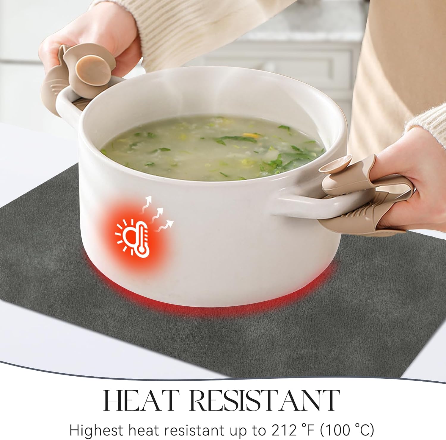 - PROTECT YOUR TABLE: Our placemats are 2mm thick and heat-resistant up to 212β/100β, which can protect your table from high temperatures and reduces noise from plates and flatware. It is an excellent choice to protect protect the surface of your dining table from hot dishes and liquid spills.