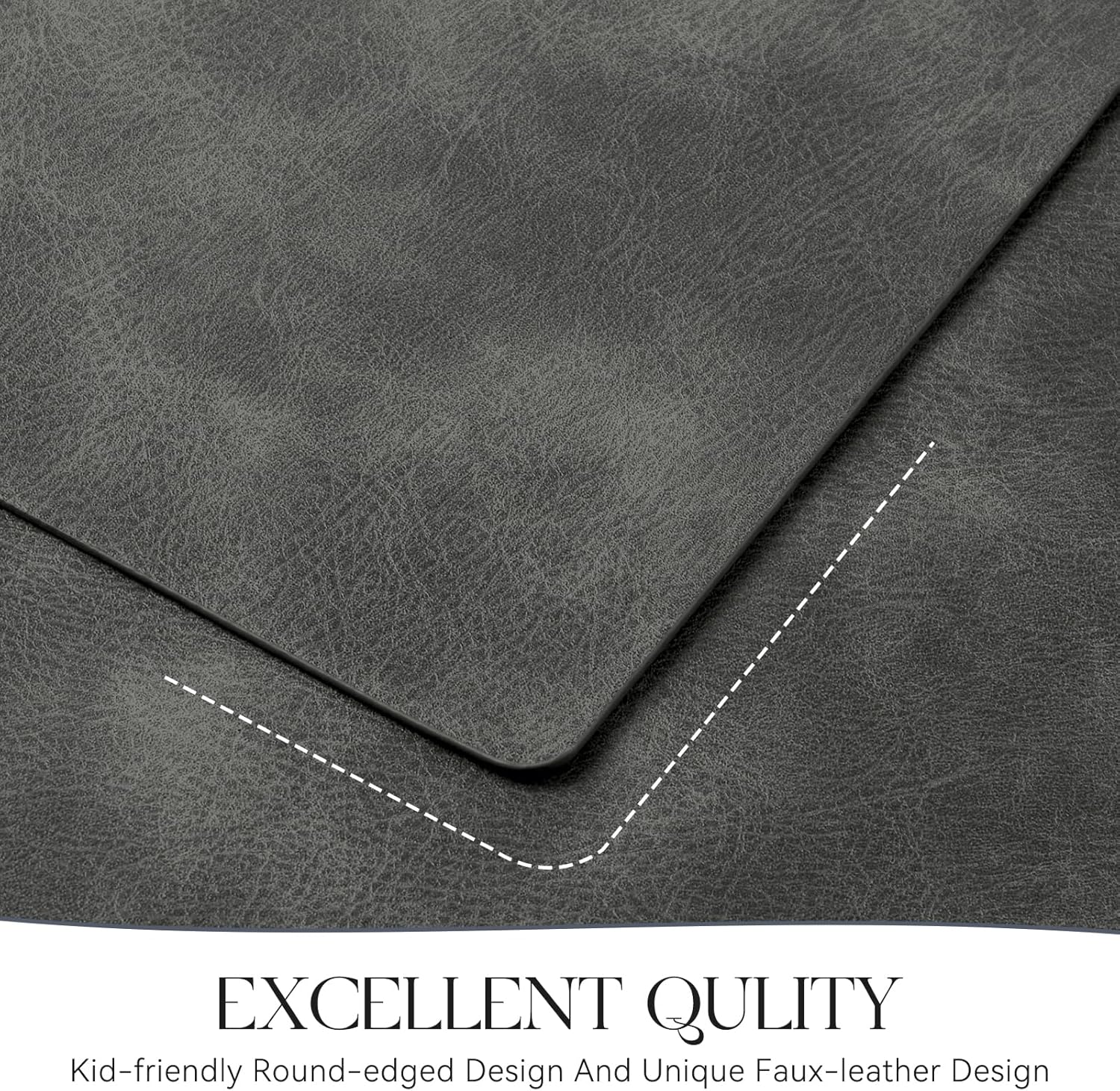 - PREMIUM QUALITY AND DURABLE: MOSAYT leather placemats are made of high quality faux leather, designed for long term use. Fine workmanship ensures superior quality and long-lasting durability of the placemats, easily protecting your table from scratches and stains.