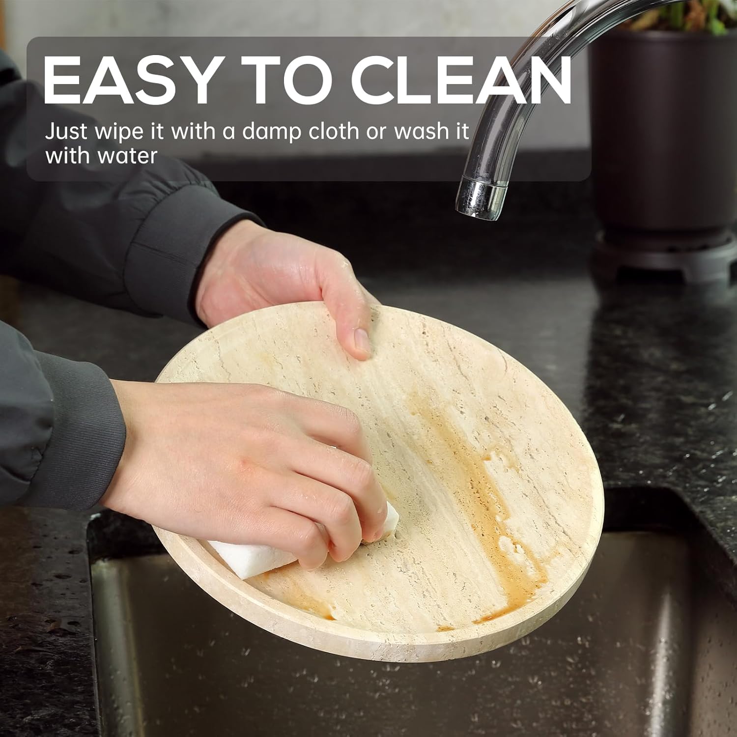 - Sturdy and Slip-Resistant: Built to last with a robust construction, our round marble tray is both durable and easy to clean. Featuring 4 non-slip pads, this marble vanity tray protects countertops from scratches and keeps items securely in place