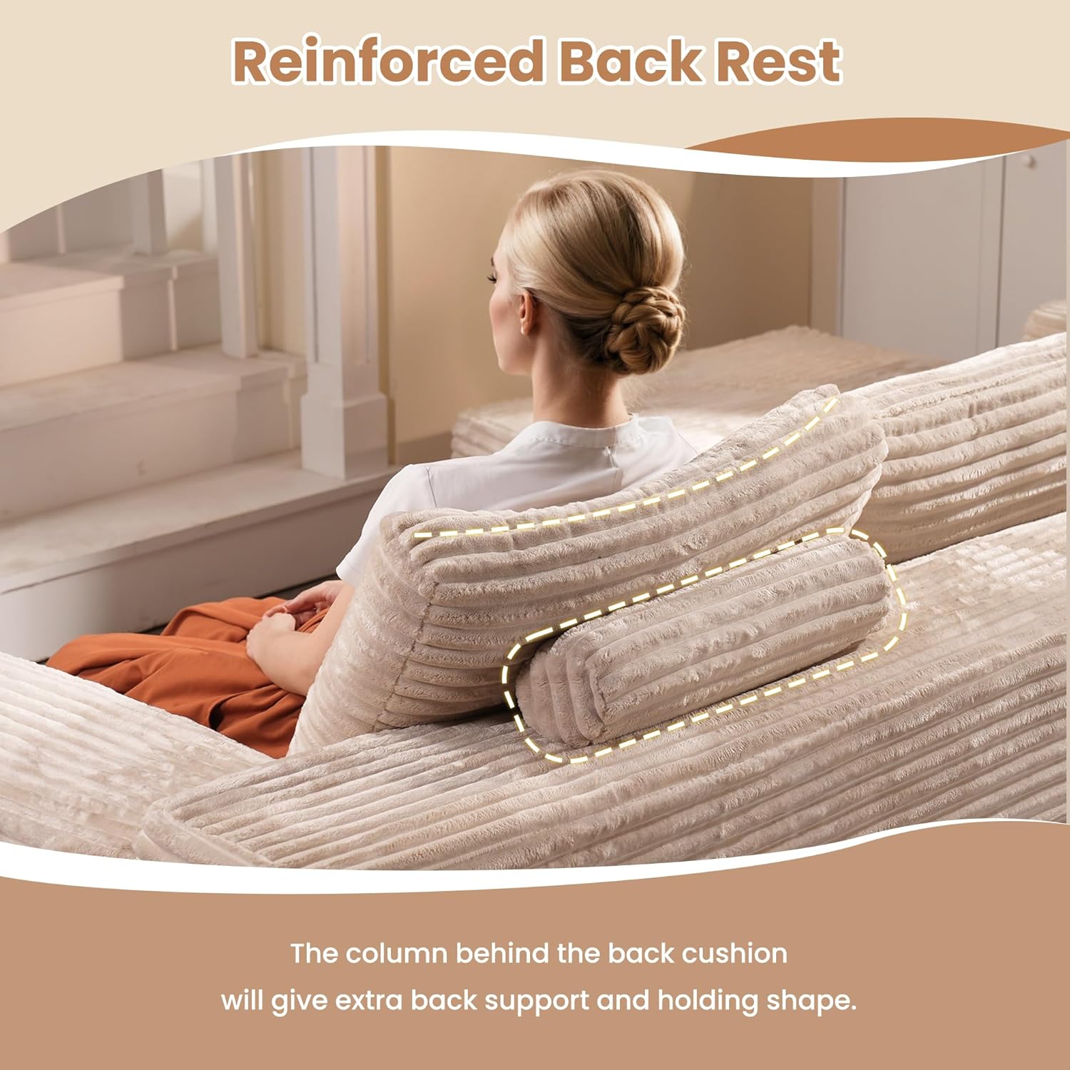 HOOOWOOO Cloud Sectional Couches for Living Room,Modular Sectional Sofa No Assembly,136X70 Inch Plush Corduroy Large U Shaped Floor Couch Set with Deep Seat(Beige)