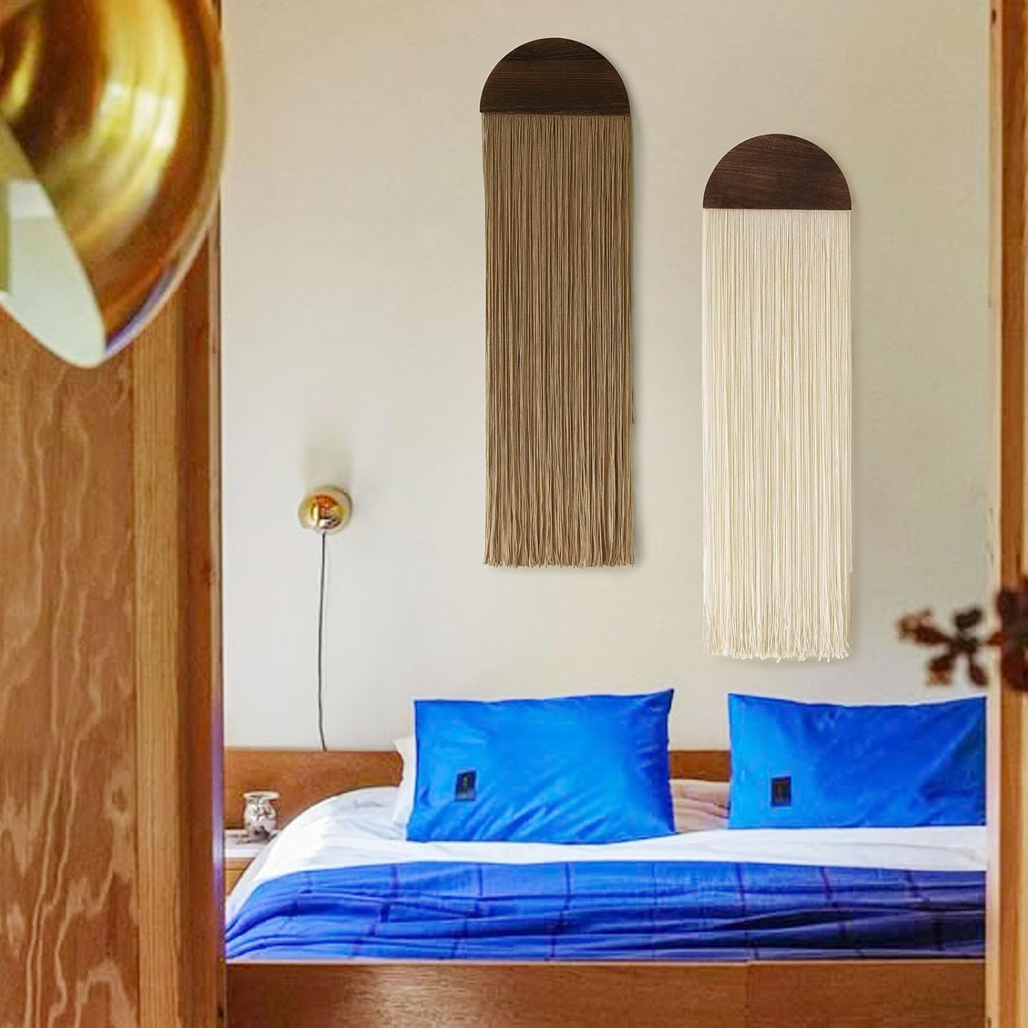 - Boho-Inspired Elegance: Macrame wall hanging tassel wood board wall decor blends natural wood with soft cotton tassels, creating a cozy and stylish ambiance in any space. Its layered design adds depth and warmth, perfect for modern and bohemian interiors.