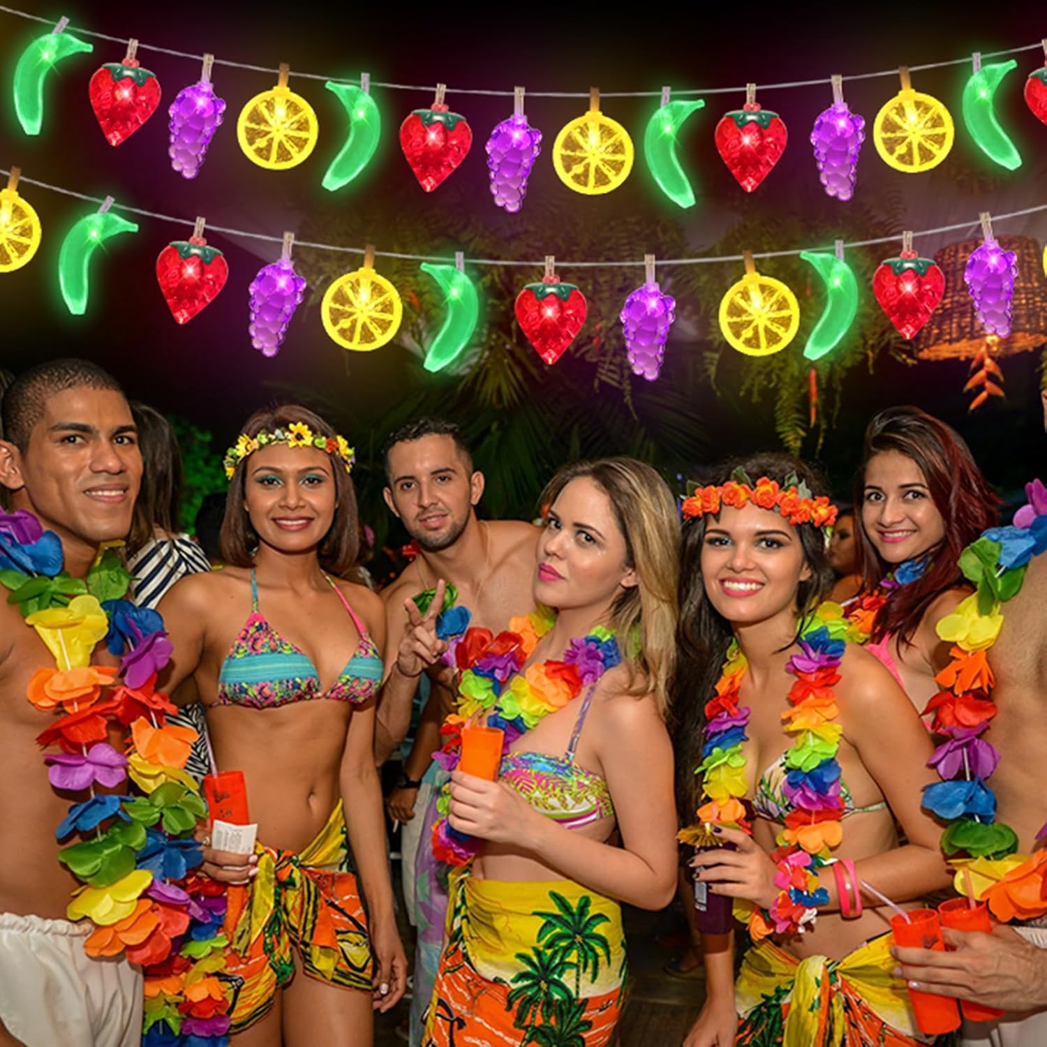 - π The Perfect Summer Gift: Summer fruits lights create a warm, inviting glow that sets the mood for any celebration. Pair these lights with Hawaiian-themed decorations like garlands, tiki torches, and palm leaves for an unforgettable tropical experience. Whether it's a birthday, anniversary, or just because, these lights make a thoughtful and unique gift for beach lovers, party enthusiasts, or anyone who loves summer vibes!