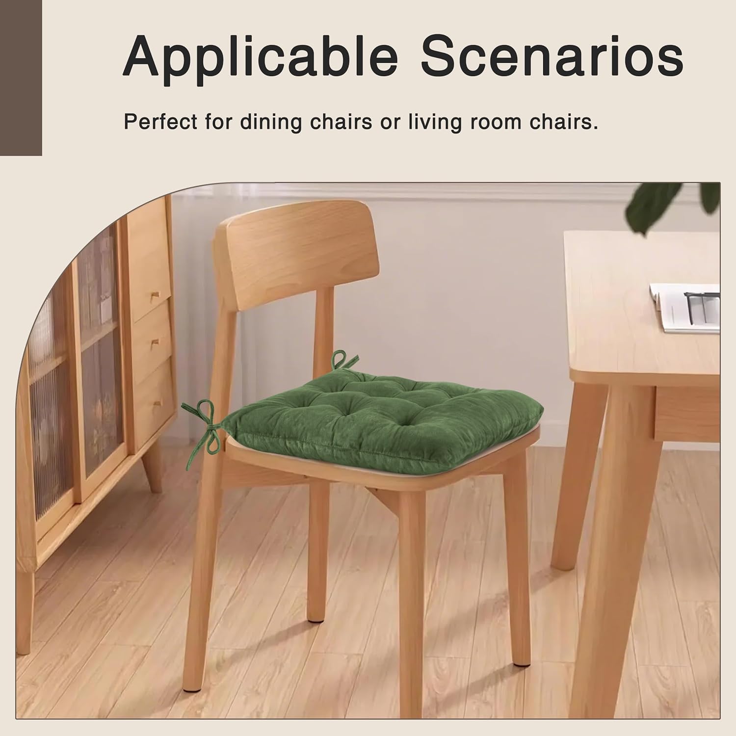OVOV Chair Cushions for Dining Chairs Set of 6 Tufted Indoor Chair Pads with Ties Soft Square Seat Cushions for Kitchen Chairs 15.5"x15.5",Green