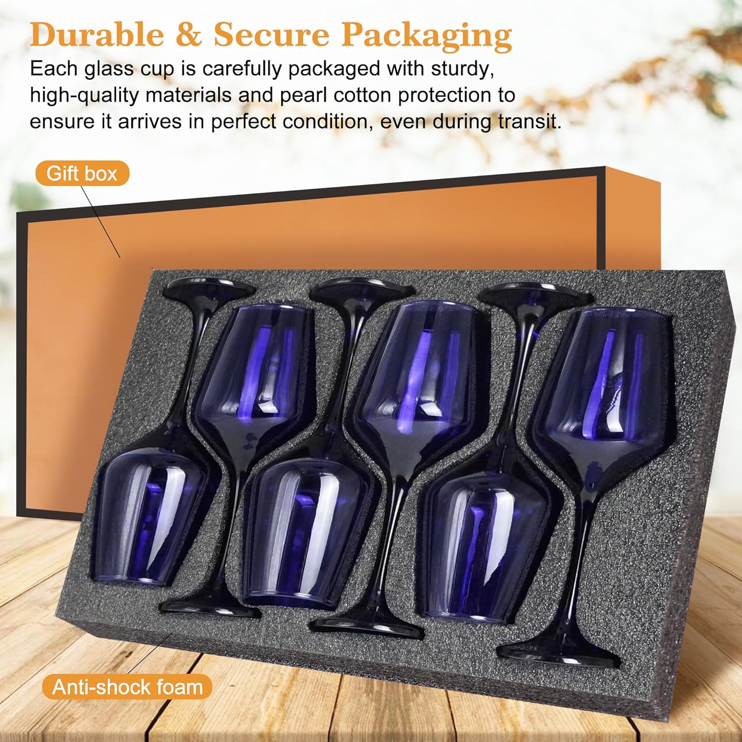 - ăElegant and Secure PackagingăGlazvia unique wine glasses is carefully packaged in an elegant and durable box to ensure safe delivery. The sturdy packaging protects the Purple glasses drinkware during shipping, so you can be confident they will arrive in perfect condition. Whether purchasing for personal use or as a wine glasses gift set, this thoughtful packaging adds an extra touch of sophistication, making the unique wine glasses set of 6 as an wine glass gifts for women.