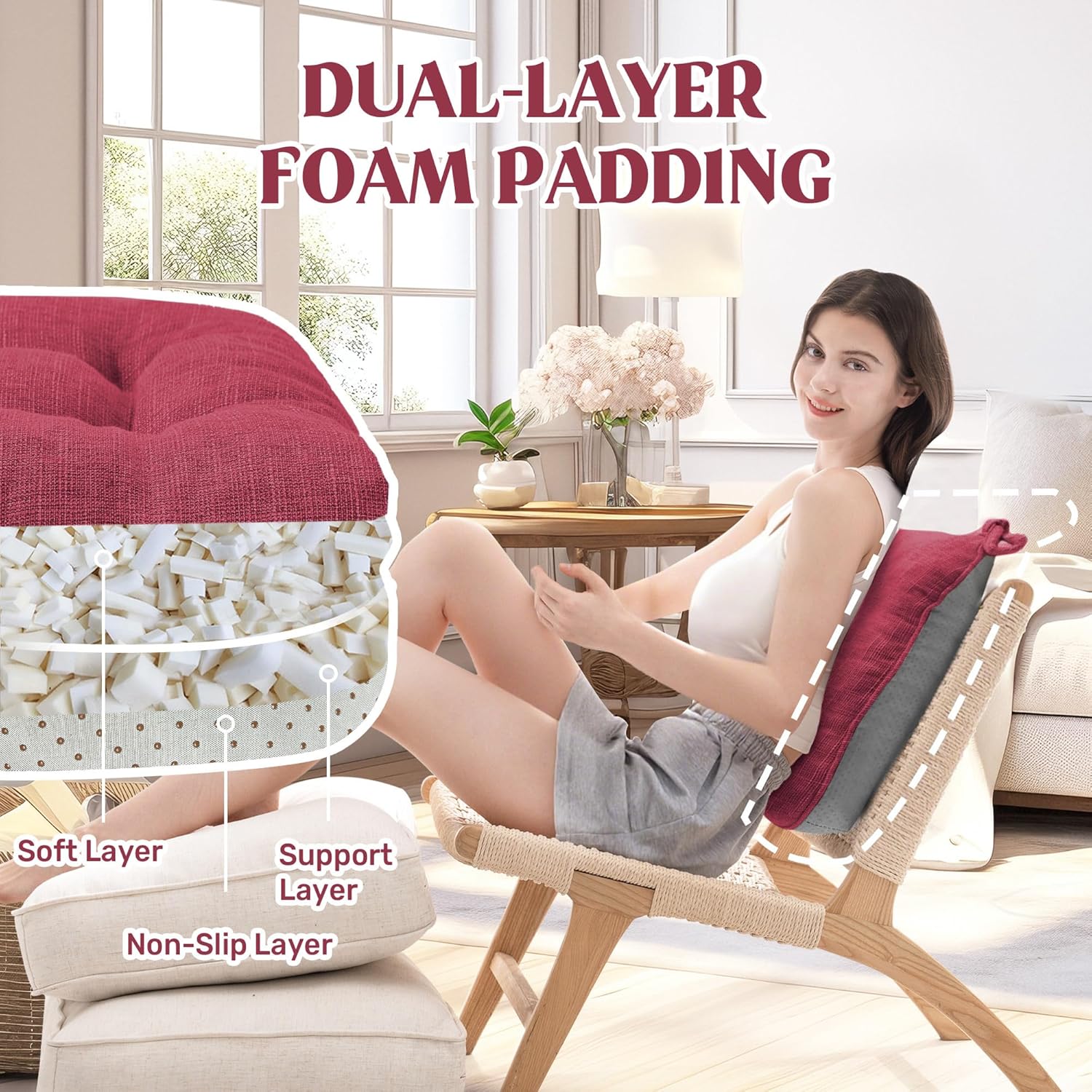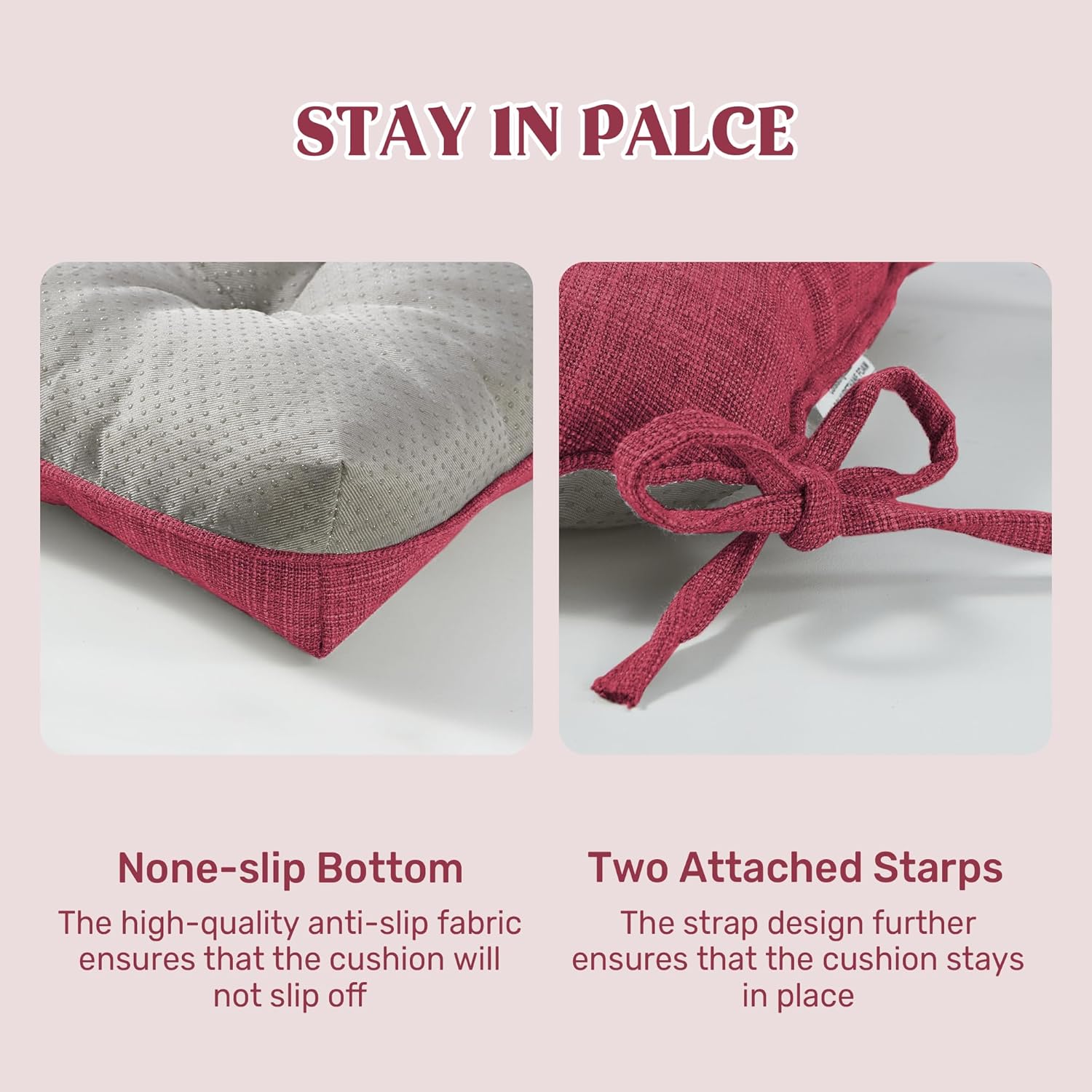 puredown® Chair Cushions for Dining Chairs, Tufted Memory Foam Chair Pads with Non-Slip Backing, Kitchen Seat Cushions with Ties, Washable Pads Set of 4, 15.5" x 15.5" x 4", Wine