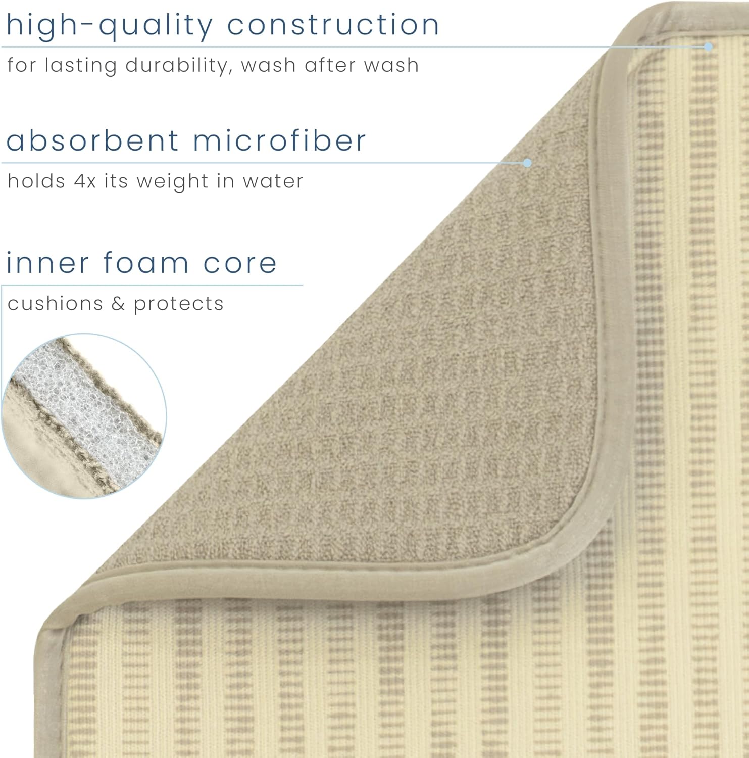 S&T INC. Dish Drying Mat XL, 18” x 24”, Absorbent Microfiber Kitchen Counter Mat, Dish Drying Pad for Dishes, Utensils, Pots and Pans, Extra Large, Cream Distressed Lines