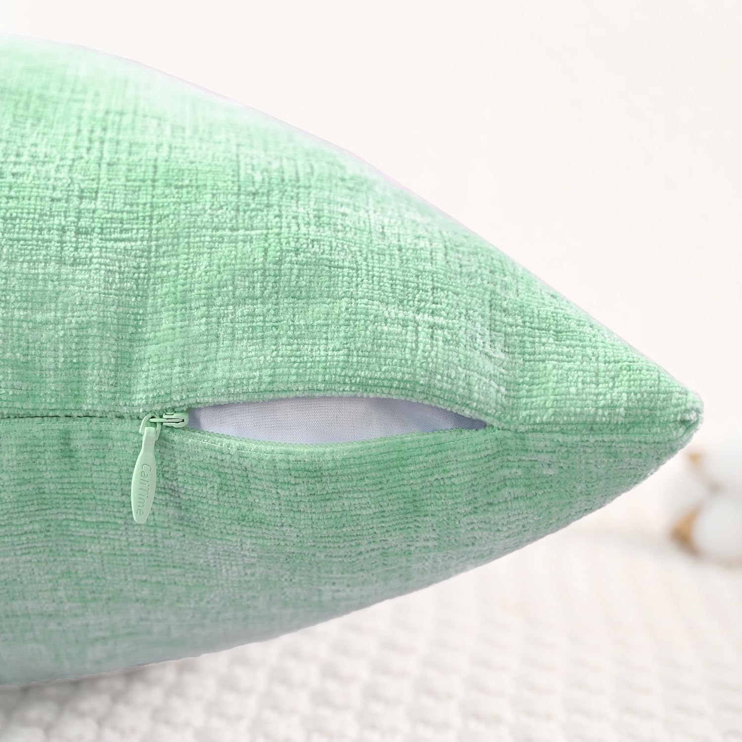 CaliTime Throw Pillow Covers Decorative 16 X 26 Inches Pack of 2 Cozy Chenille Cushion Cases for Couch Sofa Bed Living Room Home Grey Green