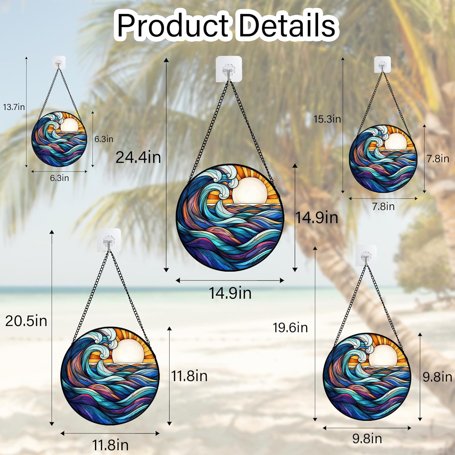 Stained Glass Window Hanging, Big Wave Sun Suncatcher Diamond Glass Panel Hangings Abstract Sun Catchers Decor for Birthday for Women, Men, Wife, Aunt, and Mom 14.9x14.9 in