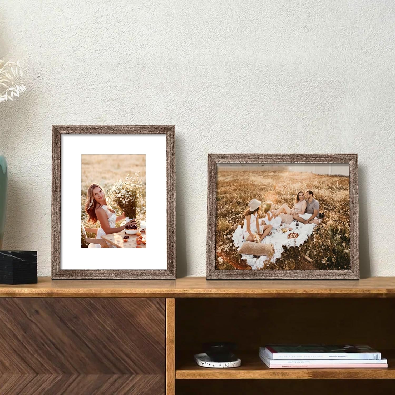 upsimples 8x10 Picture Frame, Natural Solid Wooden Picture Frames, Display 5x7 with Mat or 8 x 10 Without Mat, Wall or Tabletop, 1 Pack, Brown