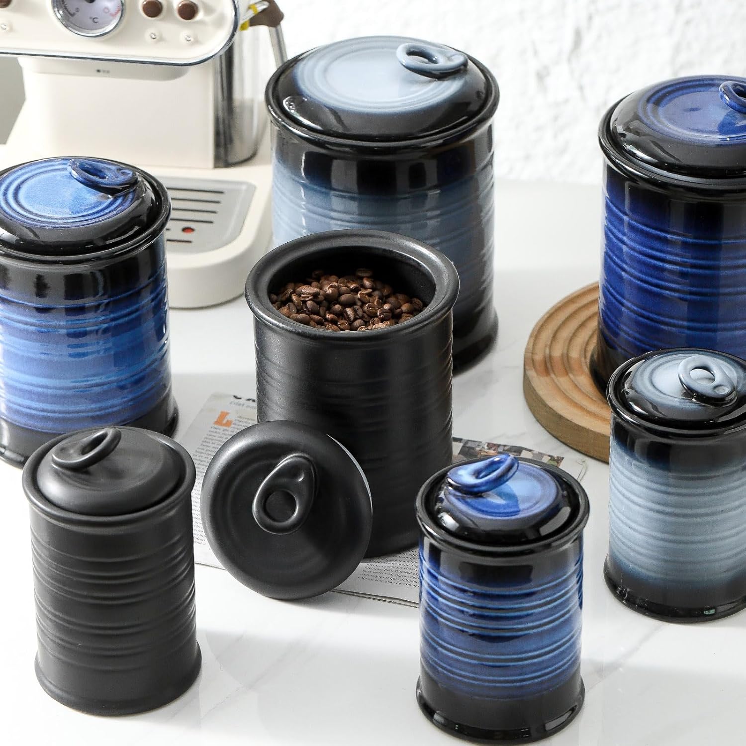 - [Food-Grade Ceramic] - Ceramic airtight lids not easy to deform like wood lids and won’t rust,canisters sets for the kitchen with silicone gasket creates an airtight and moisture proof environment to keep your food fresh and dry,the ceramic flour and sugar containers and lids are safe in dishwasher & microwave & oven & refrigerator.