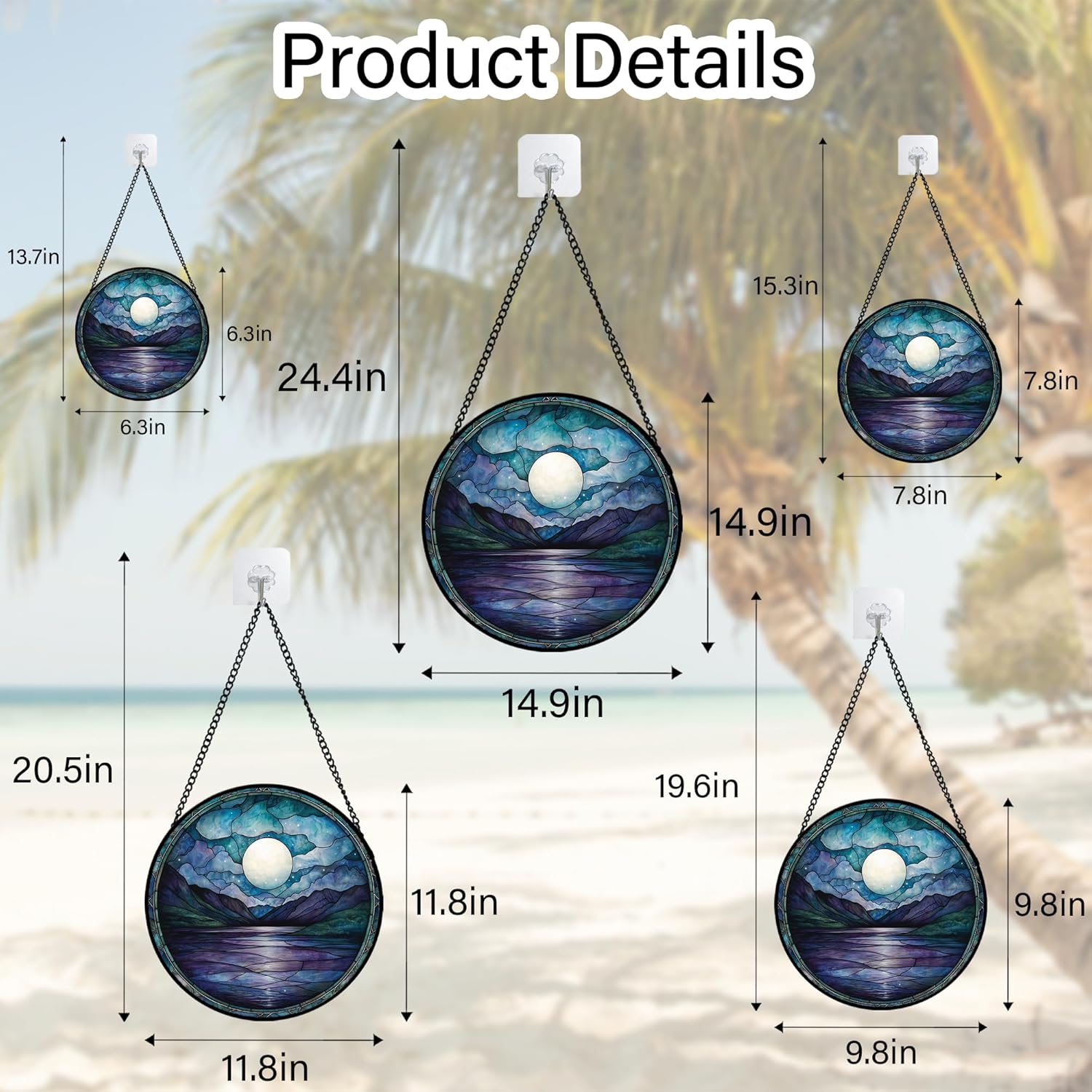 Stained Glass Window Hanging, Blue Night Moon Lake Sun Catchers Colorful Glass Panel Landscape Suncatcher Decor for Birthday for Women, Men, Wife, Aunt, and Mom 14.9x14.9 in
