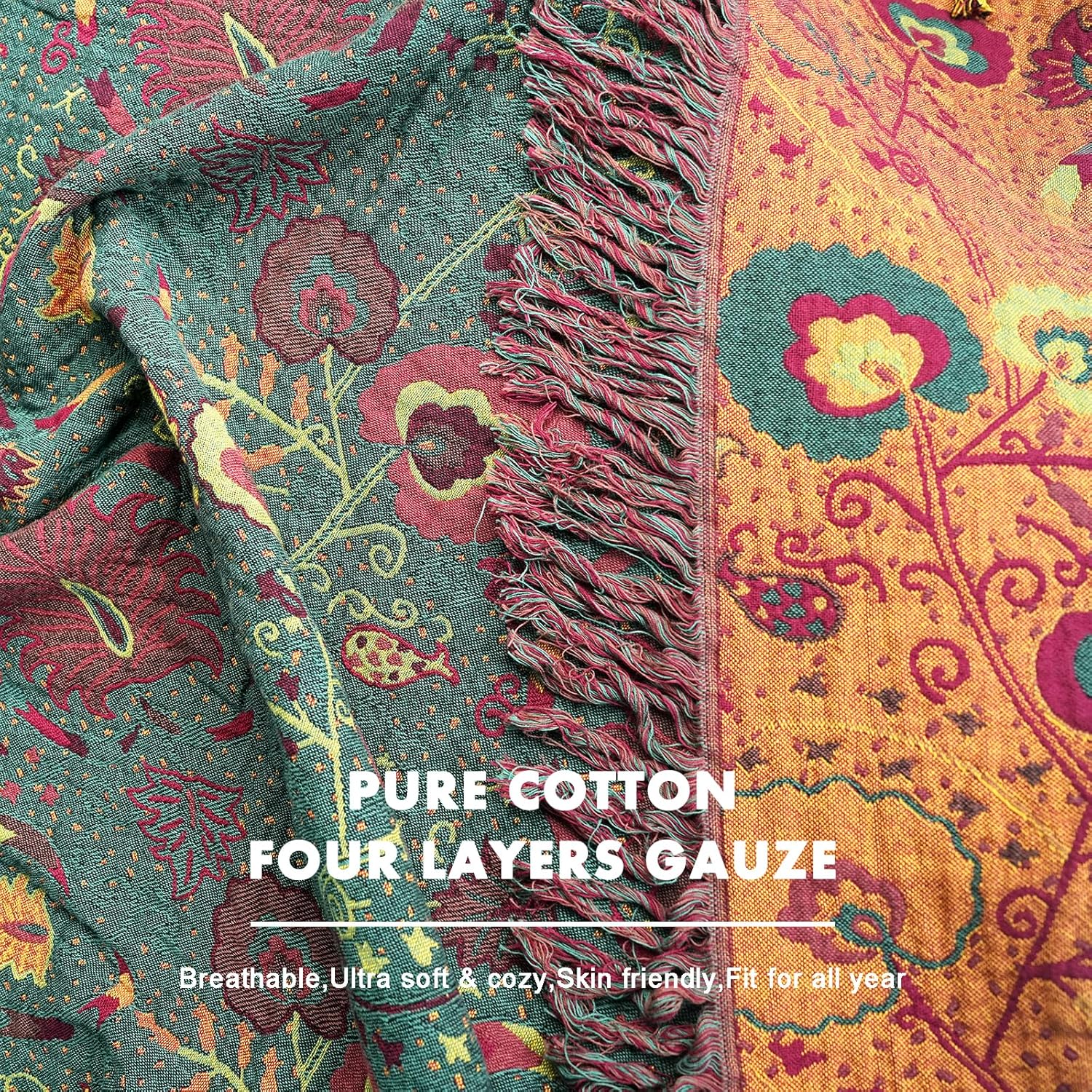 - 【MATERIAL】100% cotton, our throw blanket is made of high quality of 100% cotton, free from harmful substances and harsh chemicals, universal for all seasons, quite soft and breathable, bringing you warmth in cold days.