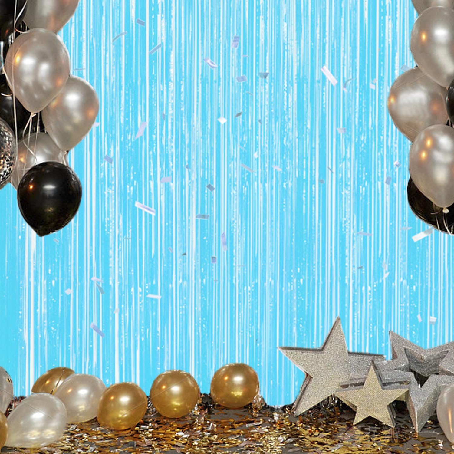 3 Pack Foil Fringe Backdrop - Pastel Blue Shiny Tinsel Curtains for Party Decoration/Photo Booth Props - 3.3x8.2 FT Metallic Foil Backdrop for Birthday, Wedding, Graduation, Christmas.