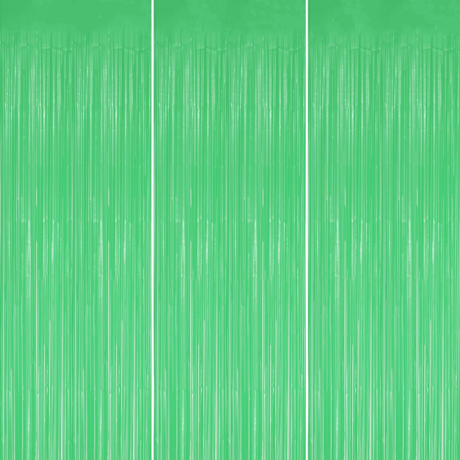 3 Pack Foil Fringe Backdrop - Pastel Light Green Shiny Tinsel Curtains for Party Decoration/Photo Booth Props - 3.3x8.2 FT Metallic Foil Backdrop for Birthday, Wedding, Graduation, Christmas