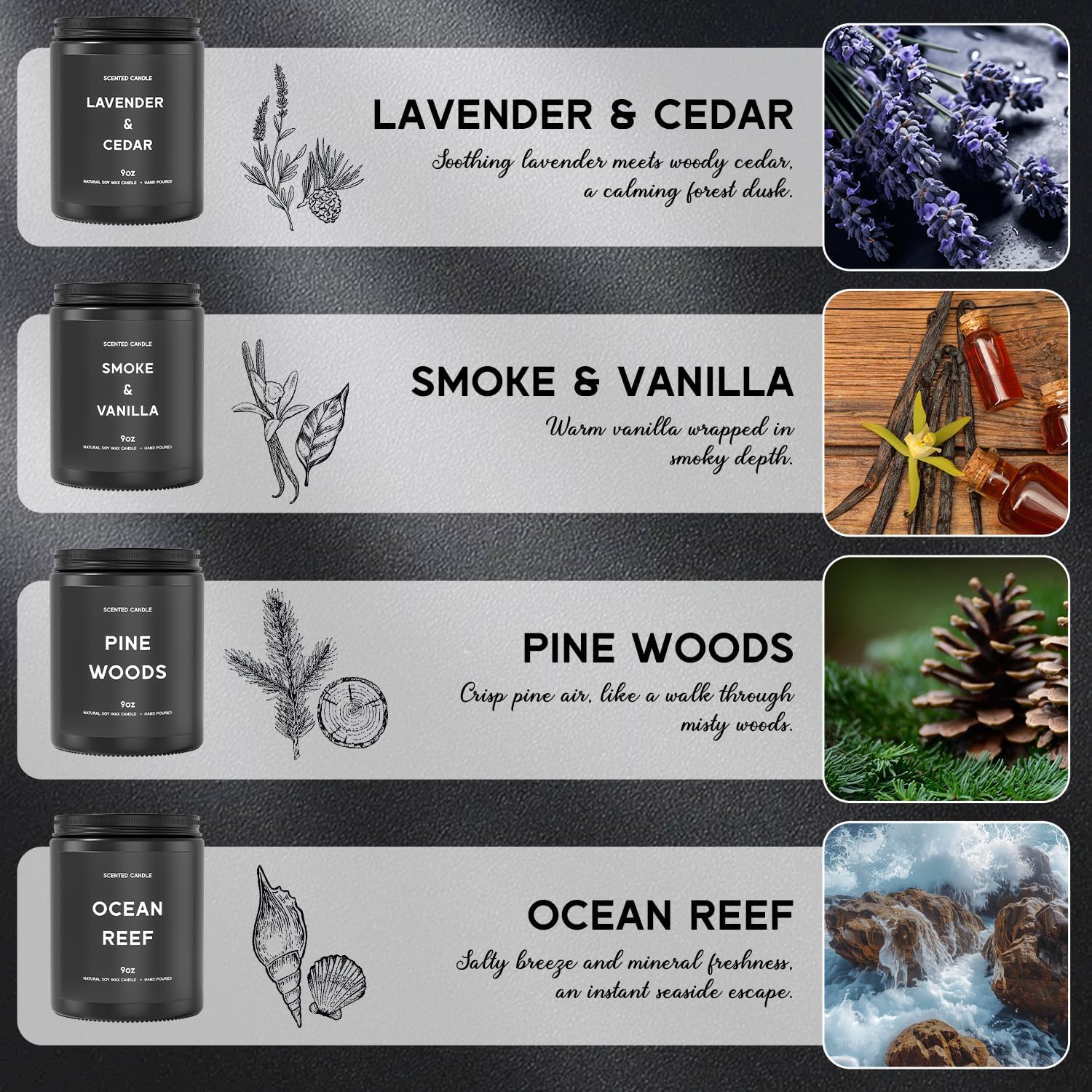 Scented Candles, 9oz×4 Scented Candles for Men, Soy Candle Gifts for Men, Personalized Blessing Minimalist Men's Candle