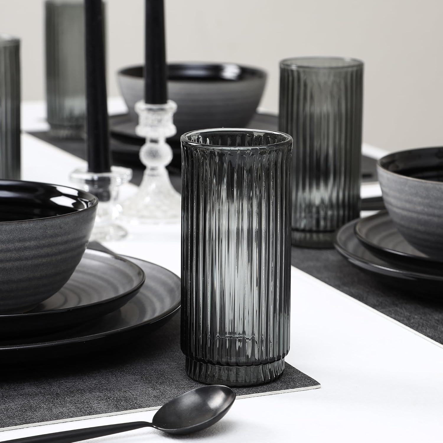 Stone Lain Dua 16-Piece Dinnerware Set Stoneware, Borosilicate Glass, Black