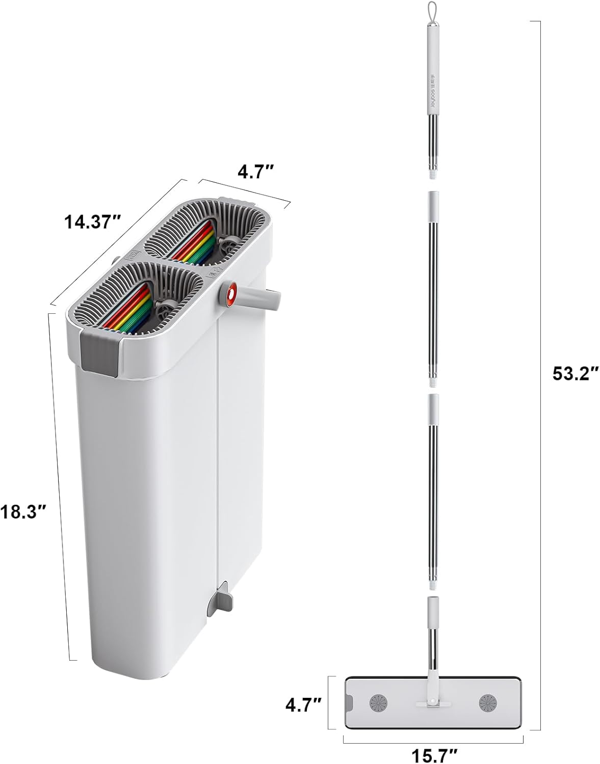 - [360Β° Spin ] Rotation flat mop-head can reach to any corners and those "under-the-whatever" places, much suitable to be a wet dry mop for walls, wall cleaner . There are suction cups on the bottom of the bucket to keep it from tipping over.