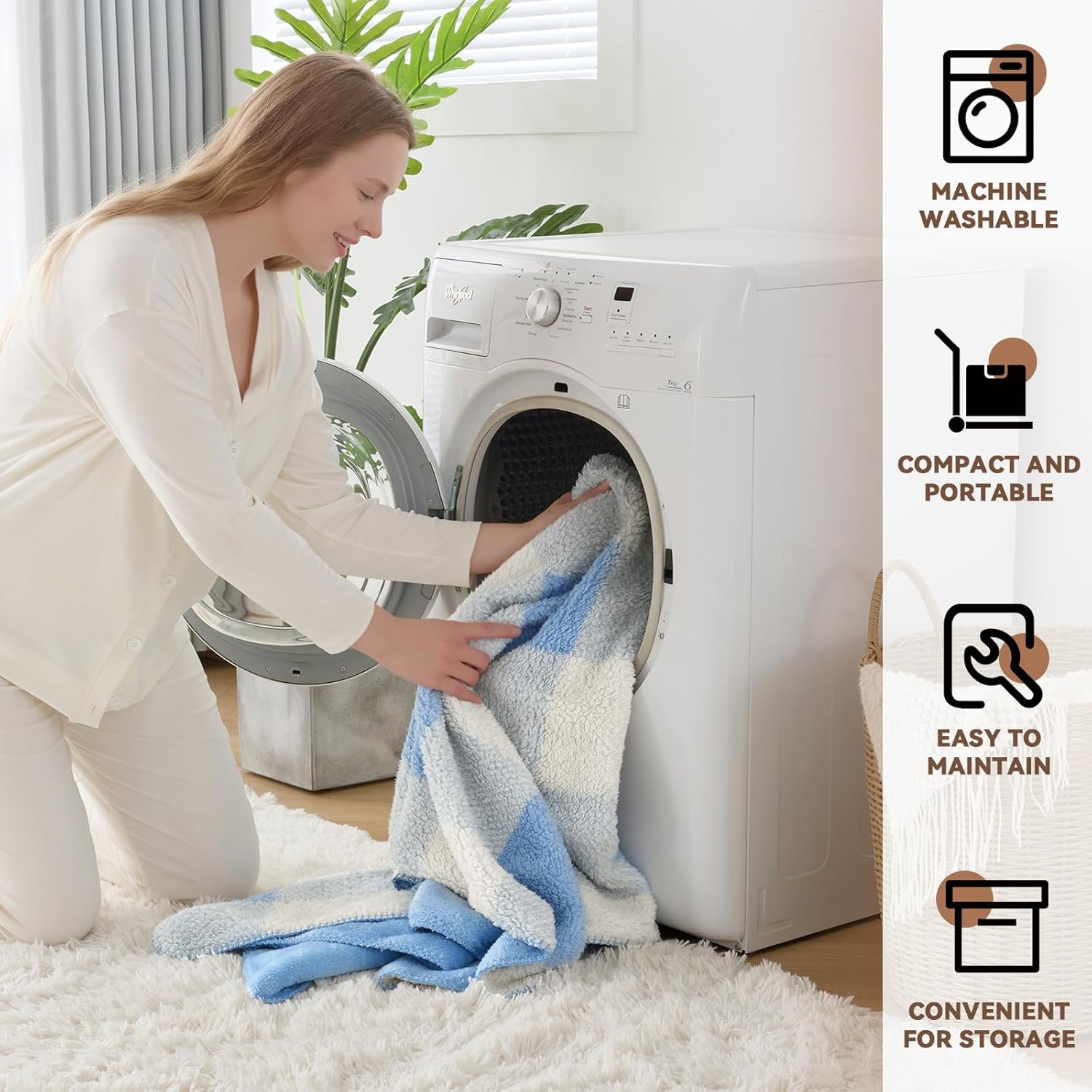 LURKA Checkered Sherpa Fleece Throw Blanket - Extra Thick and Warm Winter Soft Fuzzy Plush Blanket for Couches, Beds & Pets, Glacier, 50x60 Inches