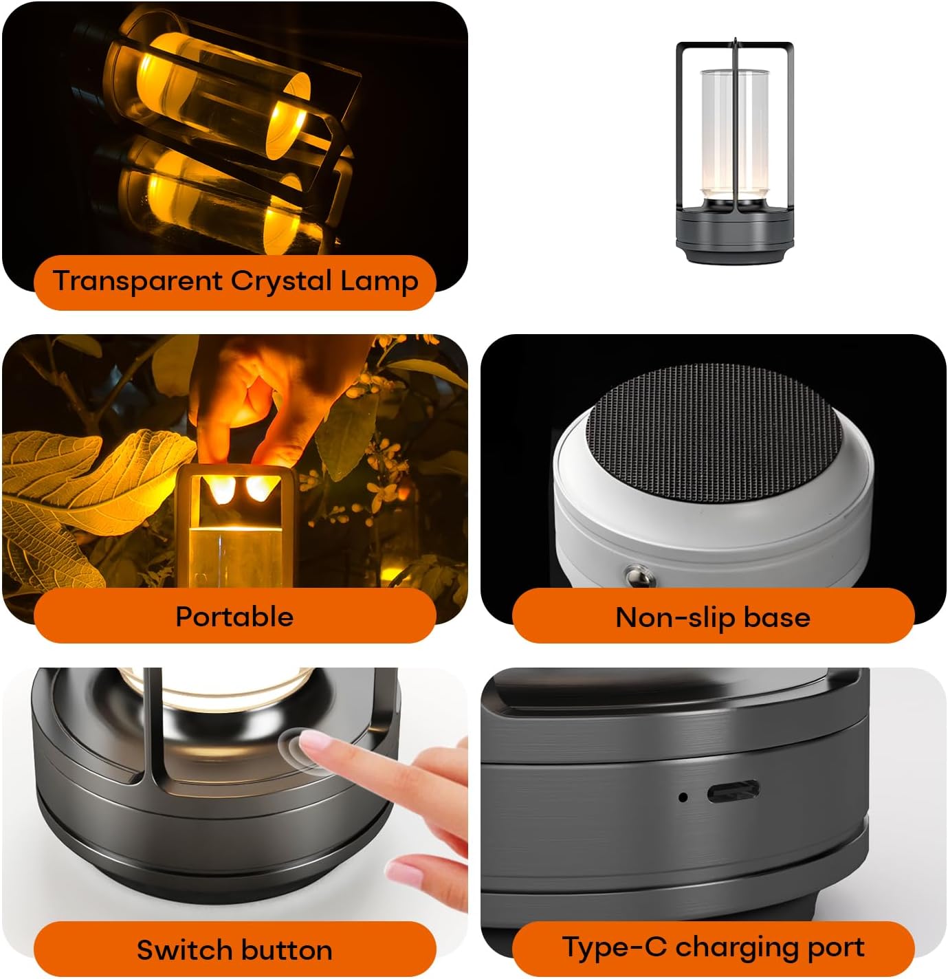 - π [ A perfect gift idea ]: Our touch light lamp can match a variety of scenes and styles while making a great gift. It can be used as an ambient light for Thanksgiving, Christmas and birthday parties. The rechargeable cordless led table lamp is suitable for bedroom, bedside table, office, restaurant, cafe, bar, hotel, outdoor patio lighting, etc.