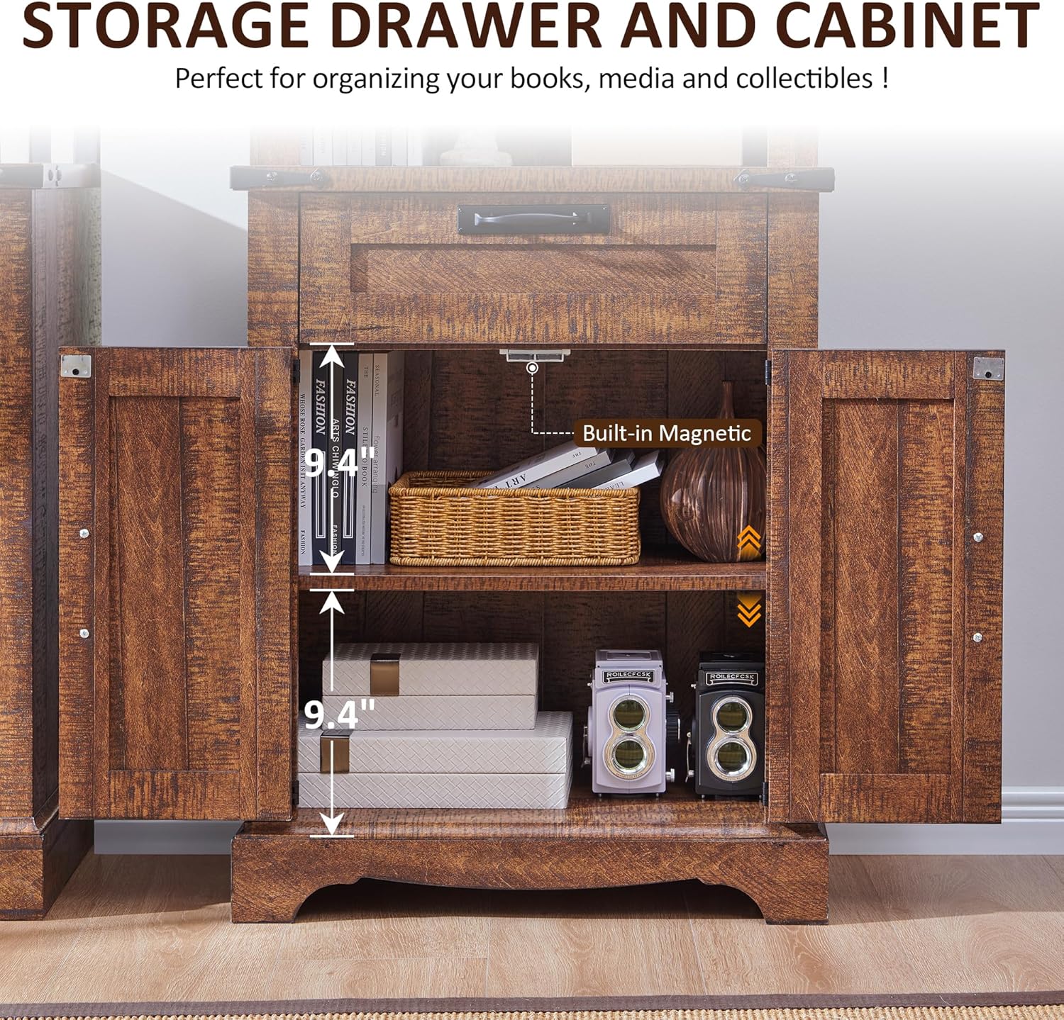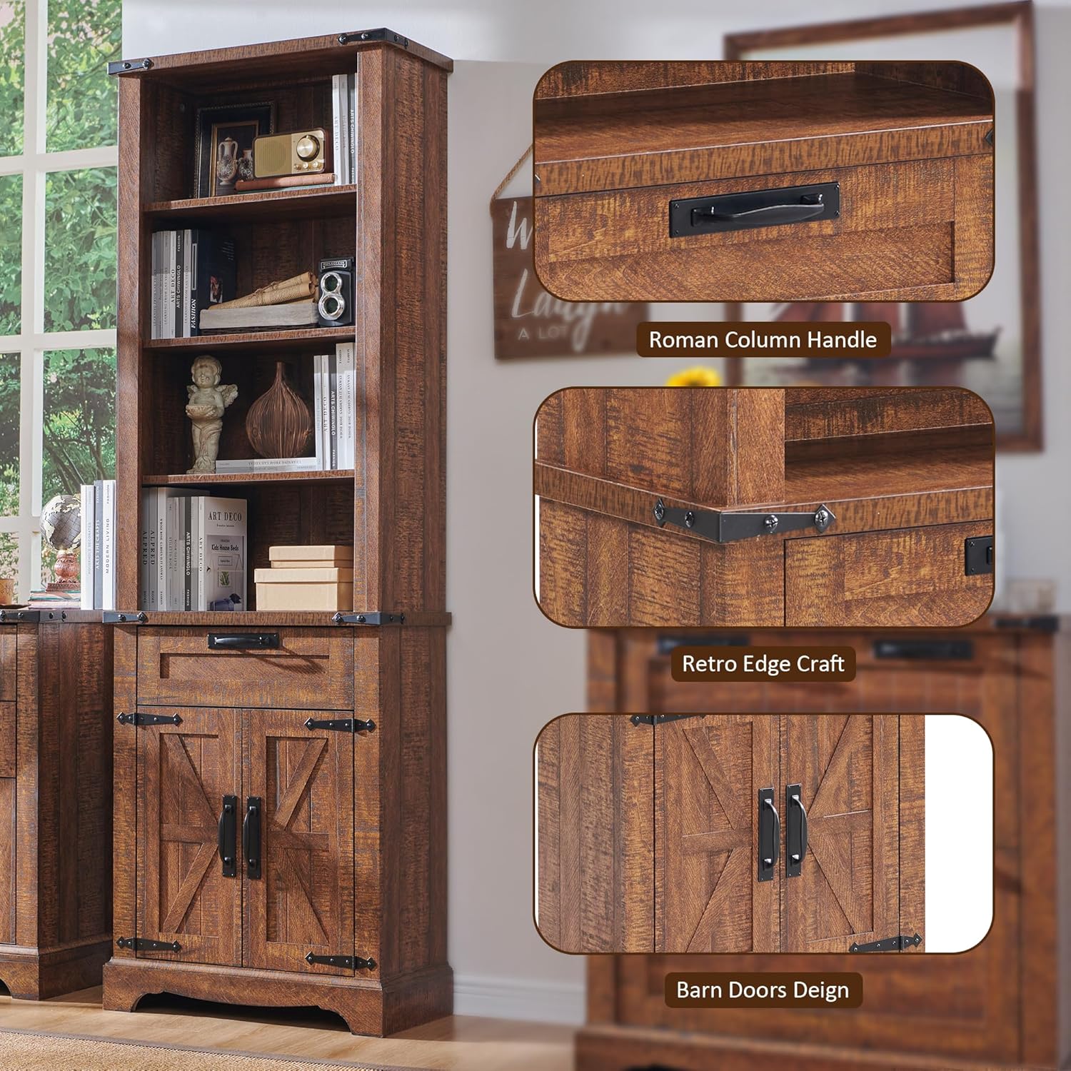 - Large Storage Space: This bookcase with drawer feature with 5 spacious adjustable shelves , 1 drawers and a colsed cabinet with barn door design, providing ample storage for all your books and decor items. Dimensions: 71.4"H x 23.6"W x 11.8"D. Whether in your living room, bedroom, or home office, this white bookshelf with a versatile storage cabinet is the perfect addition to your space