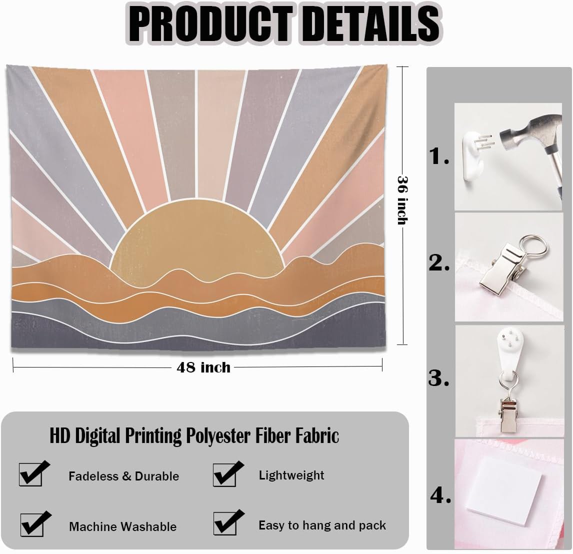 - Premium Quality: Made from soft breathable polyester with reinforced edges. Easy to hang with included loops - just add push pins or drape for instant boho charm