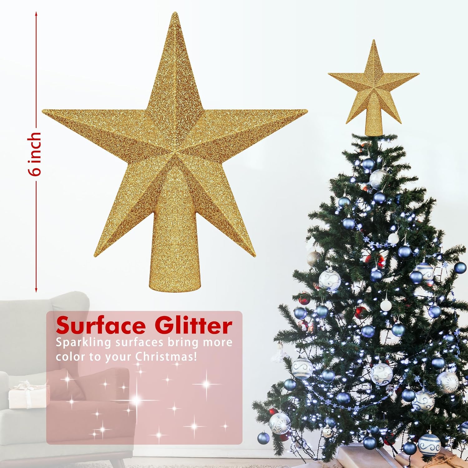 - Enhance Any Holiday Setting – Perfect for homes, offices, parties, or holiday displays, this gold star topper instantly elevates your Christmas ambiance