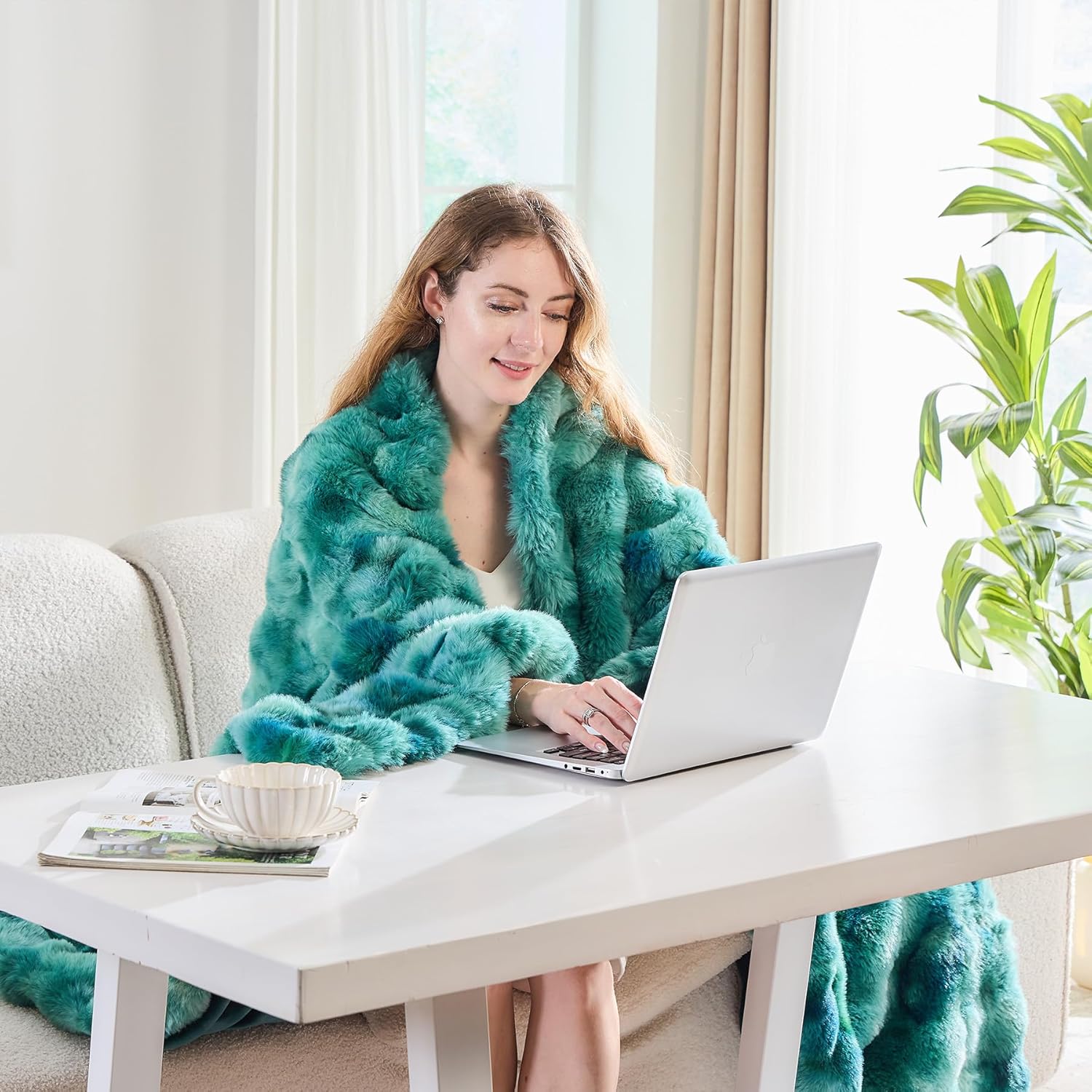 Lotus Karen Faux Fur Throw Blanket Tie-Dye Green - Big Bubble Rabbit Fluff Blanket for Couch, Large Fluffy Fuzzy Cozy Blanket,Thick Furry Plush Shaggy Blankets,108x90 Inches