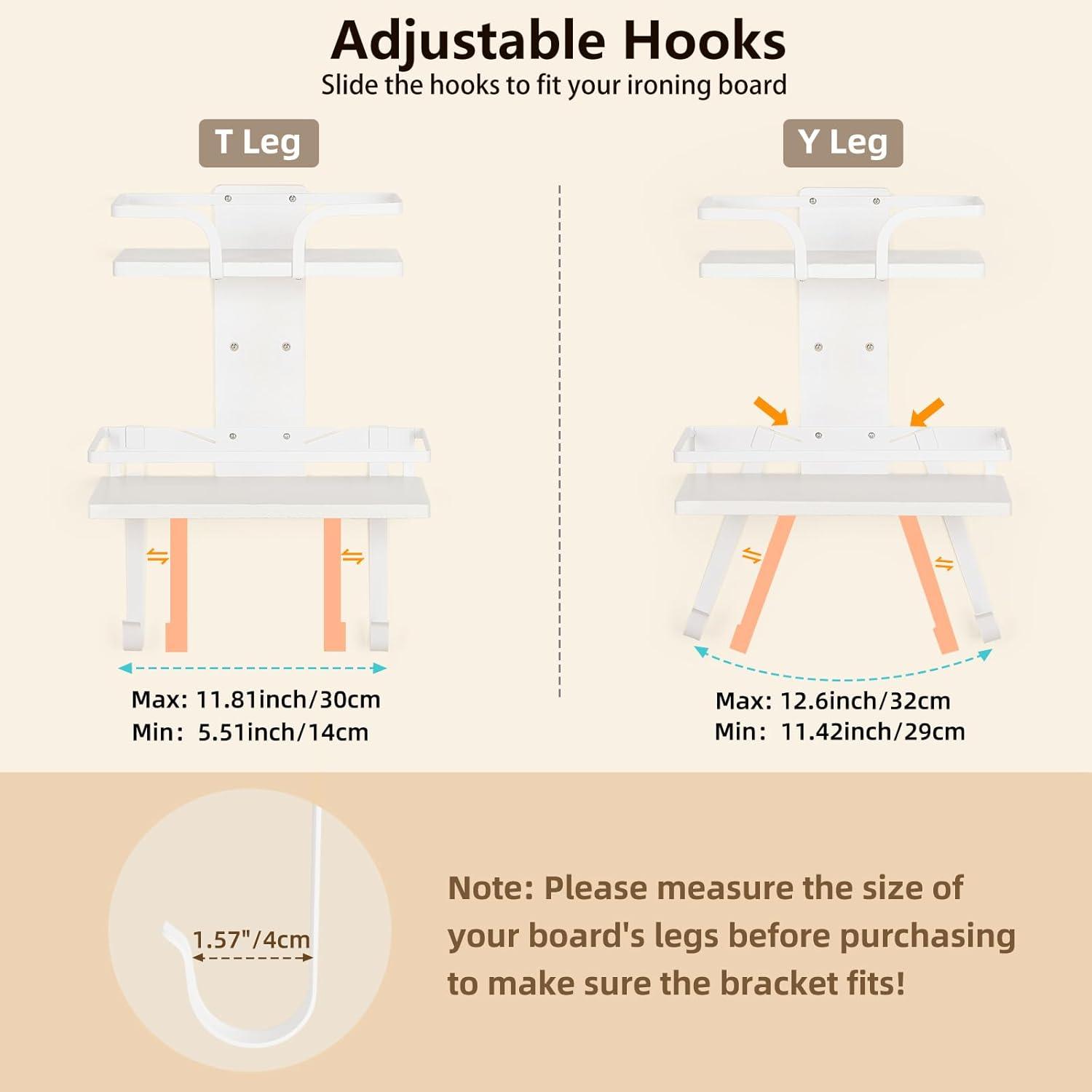 - 【2-Layer Larger Storage】Upgraded 2-layer solid wood design, this ironing board hanger for wall offers twice as much storage space as any other products. It is convenient for you to keep your irons, ironing board and ironing accessories in one location.