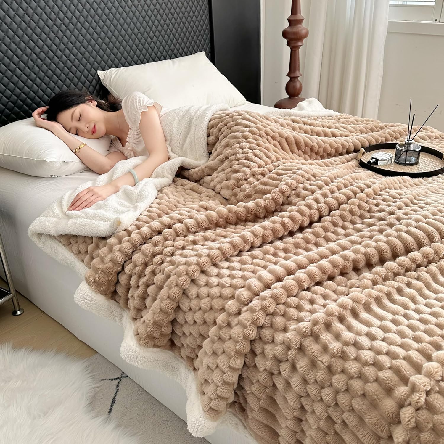- Unique Design:coral fleece Jacquard face and sherpa fleece reverse with stripe design offer you a softer touch. Snuggling on your couch or bed with our blankets to enjoy happy hours. Different colors meet your needs.