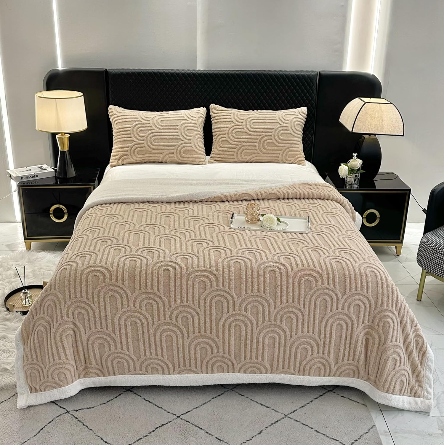 - Unique Design:coral fleece Jacquard face and sherpa fleece reverse with arch design offer you a softer touch. Snuggling on your couch or bed with our blankets to enjoy happy hours. Different colors meet your needs.