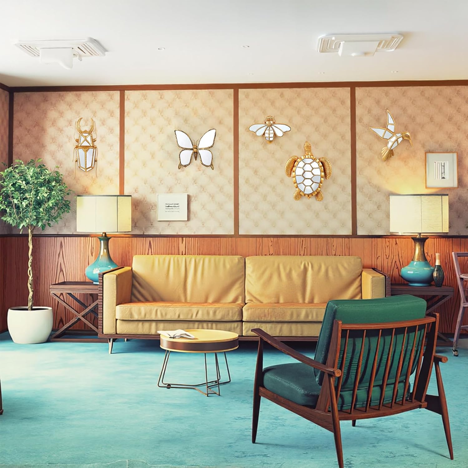 - Artistry in Form:These golden wall sculptures of hummingbirds, turtles, bees, butterflies, and beetles exhibit masterful anatomical precision. Each creature's dynamic posture - from the butterfly's mid-flight wing articulation to the beetle's exploratory leg positioning - captures nature's vitality through sculptural storytelling. The pieces transform spaces with organic elegance through meticulously rendered textures like wing venation and carapace patterning.