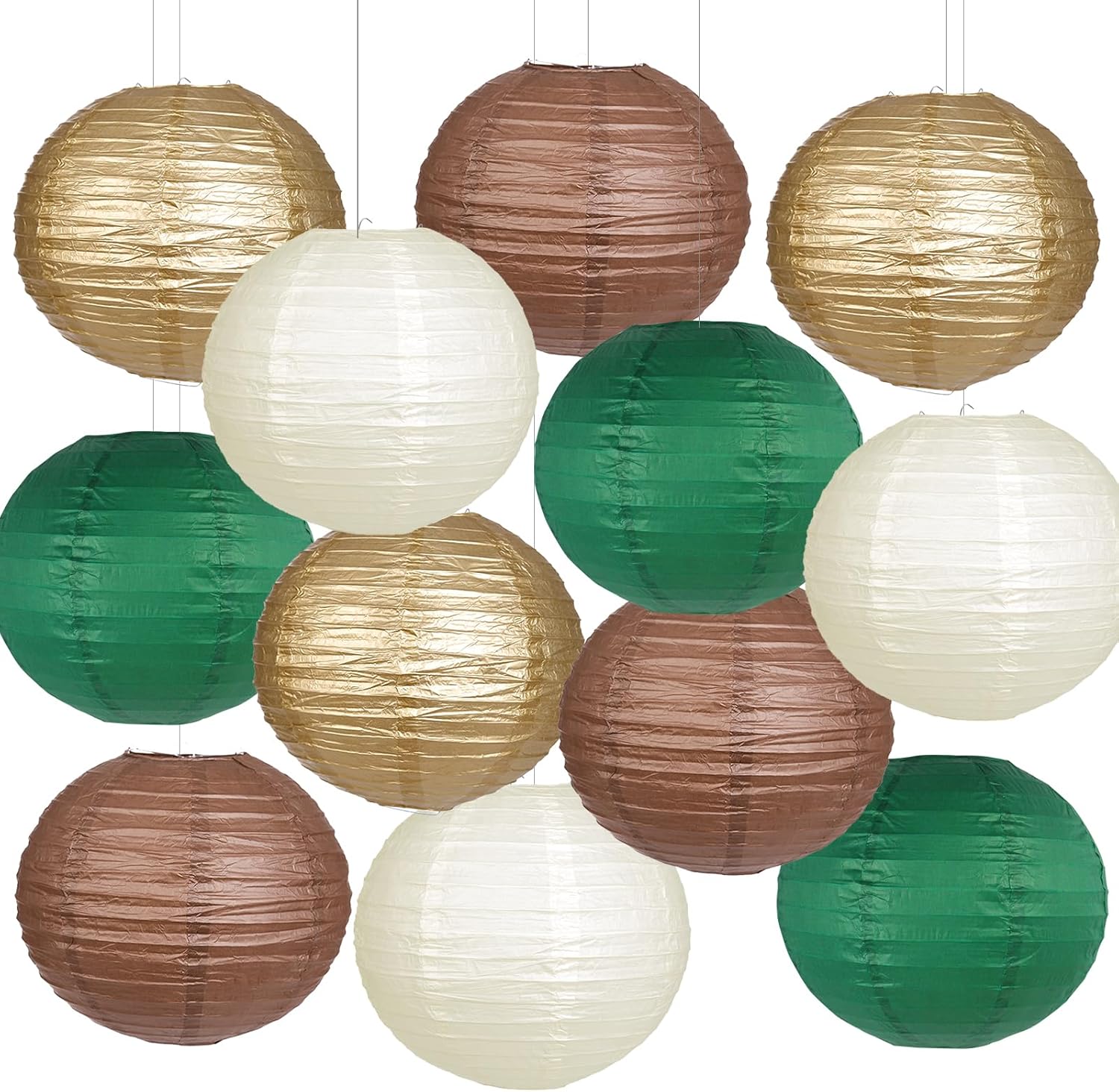 Paper Lanterns Green Brown Gold Round Hanging Chinese Lanterns for Birthday Party Gender Neutral Woodland Baby Shower Decorations Pack of 12