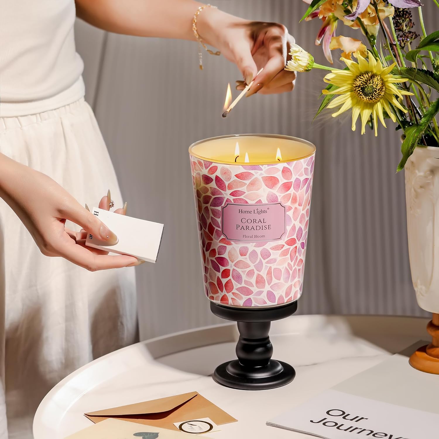 HomeLights Coral Paradise Scented Candles | 34oz Soy Candles Bohemian Natural Textures 3-Wick Large Candle Jars | Ideal Candle Gifts for Events, Home Decor Stress, Relief & Relaxation