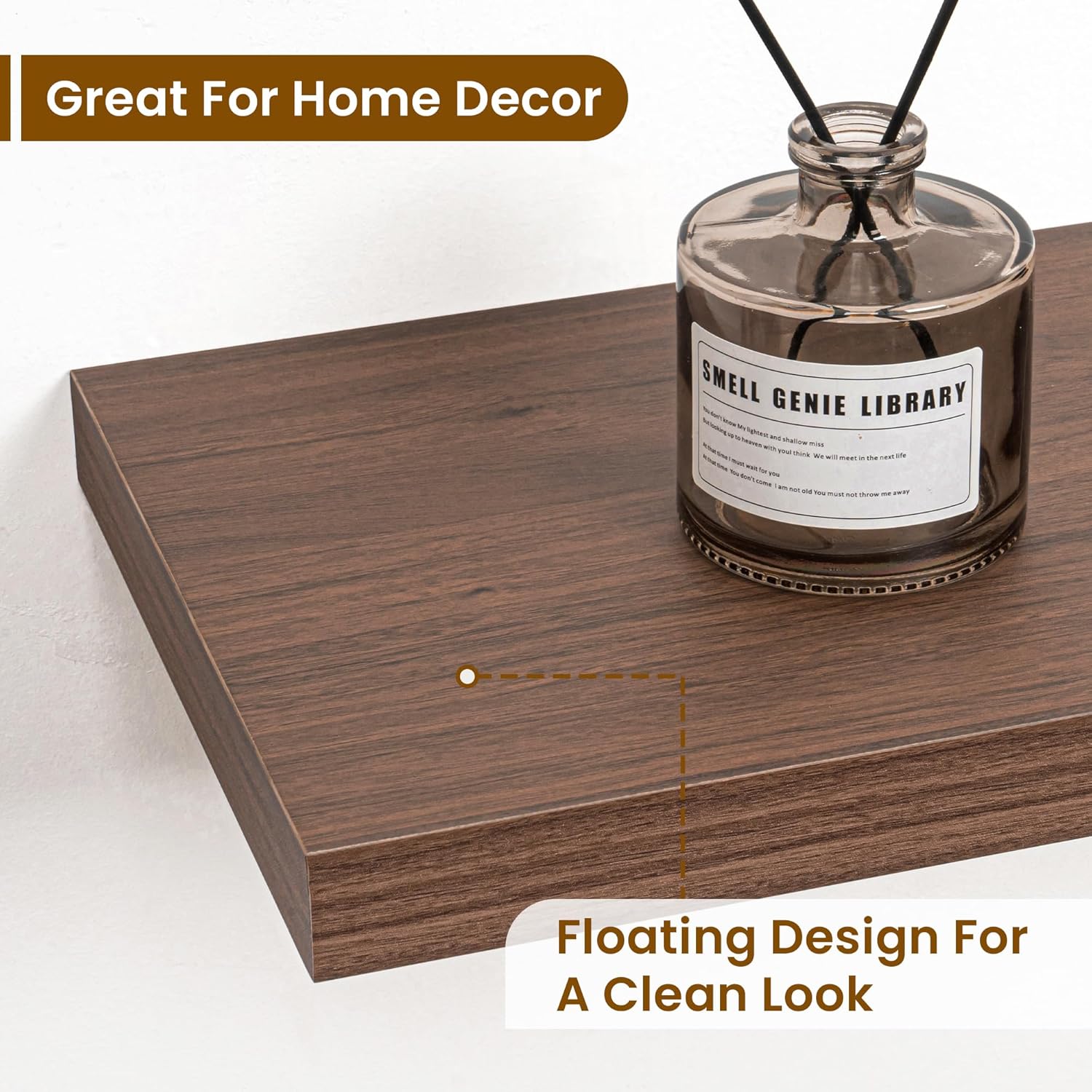 Fun Memories 55 Inch Fireplace Mantel Shelf -Long Floating Shelves, Deep Wall Mounted Farmhouse Display Shelves with Invisible Heavy Duty Metal Bracket, Walnut, 2 Pack