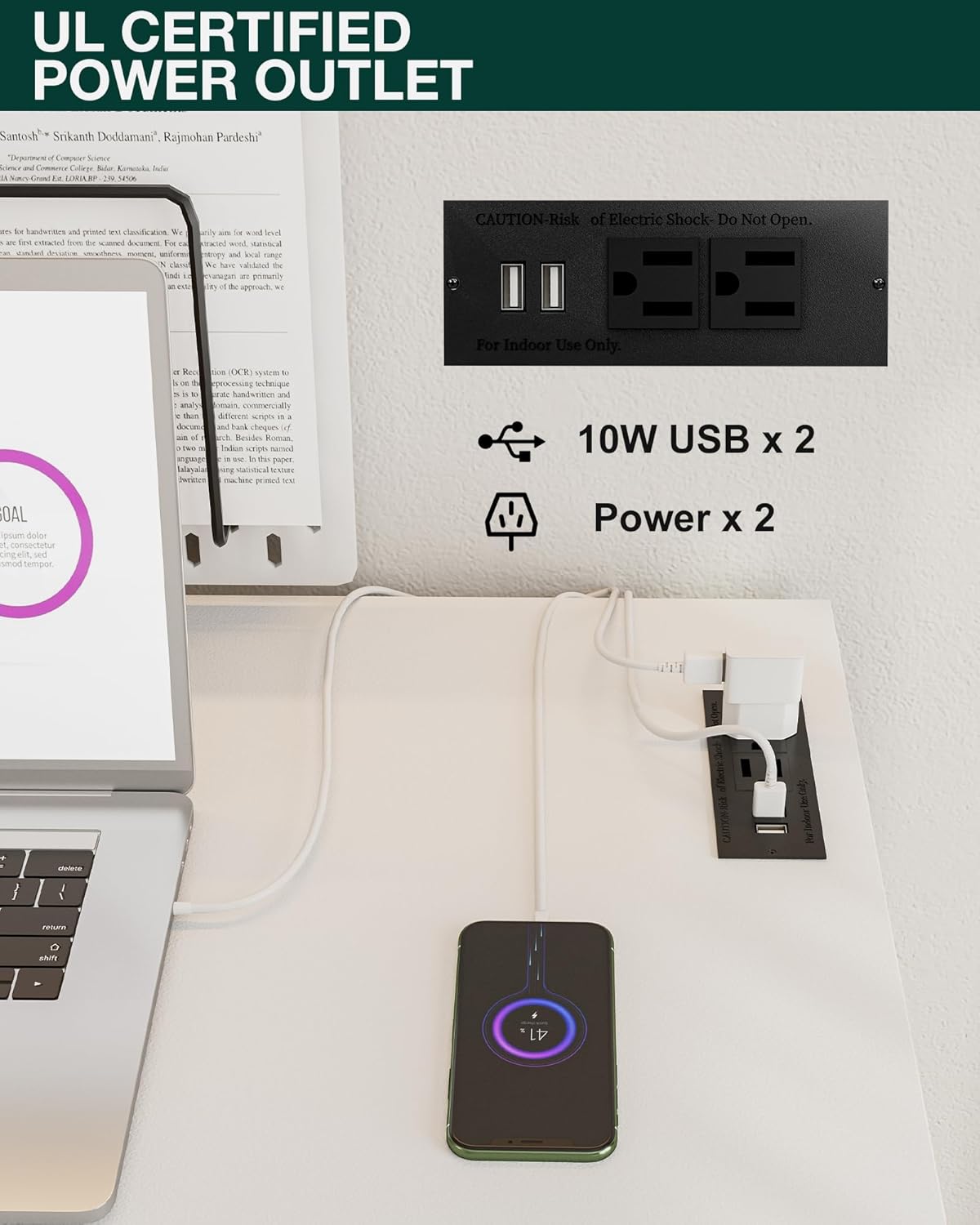 - 👍𝗜𝗡𝗧𝗘𝗚𝗥𝗔𝗧𝗘𝗗 𝗣𝗢𝗪𝗘𝗥 𝗛𝗨𝗕 – 𝗖𝗛𝗔𝗥𝗚𝗘 𝗘𝗩𝗘𝗥𝗬𝗧𝗛𝗜𝗡𝗚 𝗔𝗧 𝗢𝗡𝗖𝗘 — Stay powered and productive with 2 built-in AC outlets and 2 USB ports—perfect for laptops, phones, tablets, and more. No more messy extension cords or reaching for distant plugs; this smart design keeps all your devices charged and your workspace neat