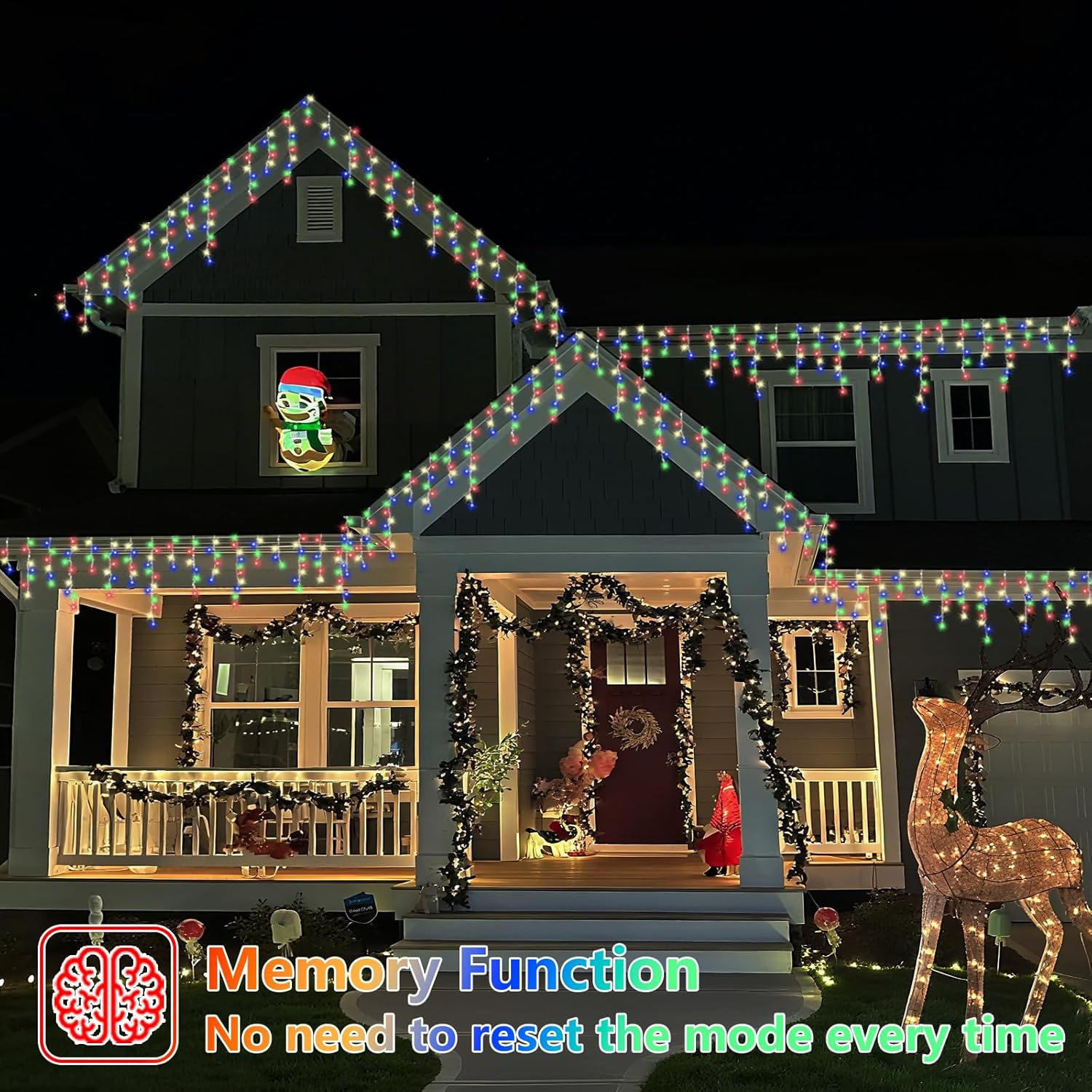 - Timer & Memory Function: The icicle string light are able to turn on for 6 hours or off for 18 hours automatically everyday when timer function activated, and it will remember the last lighting mode with the built-in memory chip. Choose a timer mode not only energy saving, but also save electricity bills.