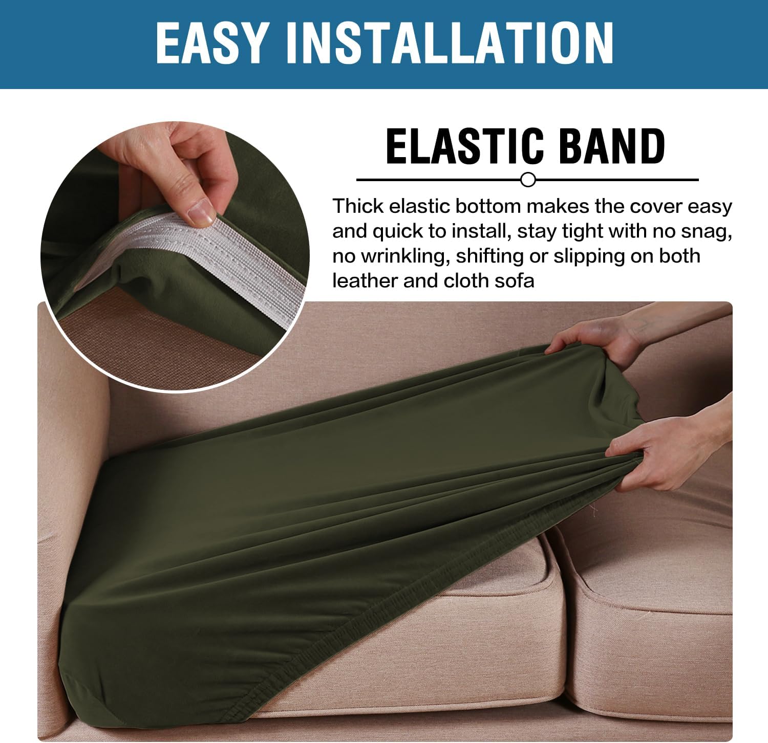 H.VERSAILTEX Velvet Stretch Couch Cushion Cover Plush Cushion Slipcover for Chair Loveseat Sofa Cushion Furniture Protector Seat Cushion Sofa Cover (3 Piece XL Sofa Cushion Covers, Olive)
