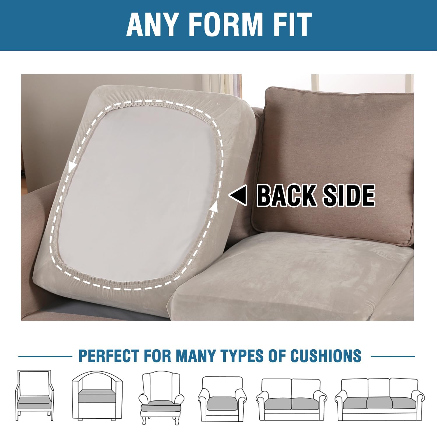 - ANY FORM FIT: Each cushion cover measures: 35-40" length, 21.6-30.5" width and 2-10" height. It's crafted from a unique extra stretchy fabric, perfect for regular square cushions, T-cushions and also L-cushions, used to cover not only the seat cushions of your sofa, but also the back cushions as long as they can be separated from the sofa