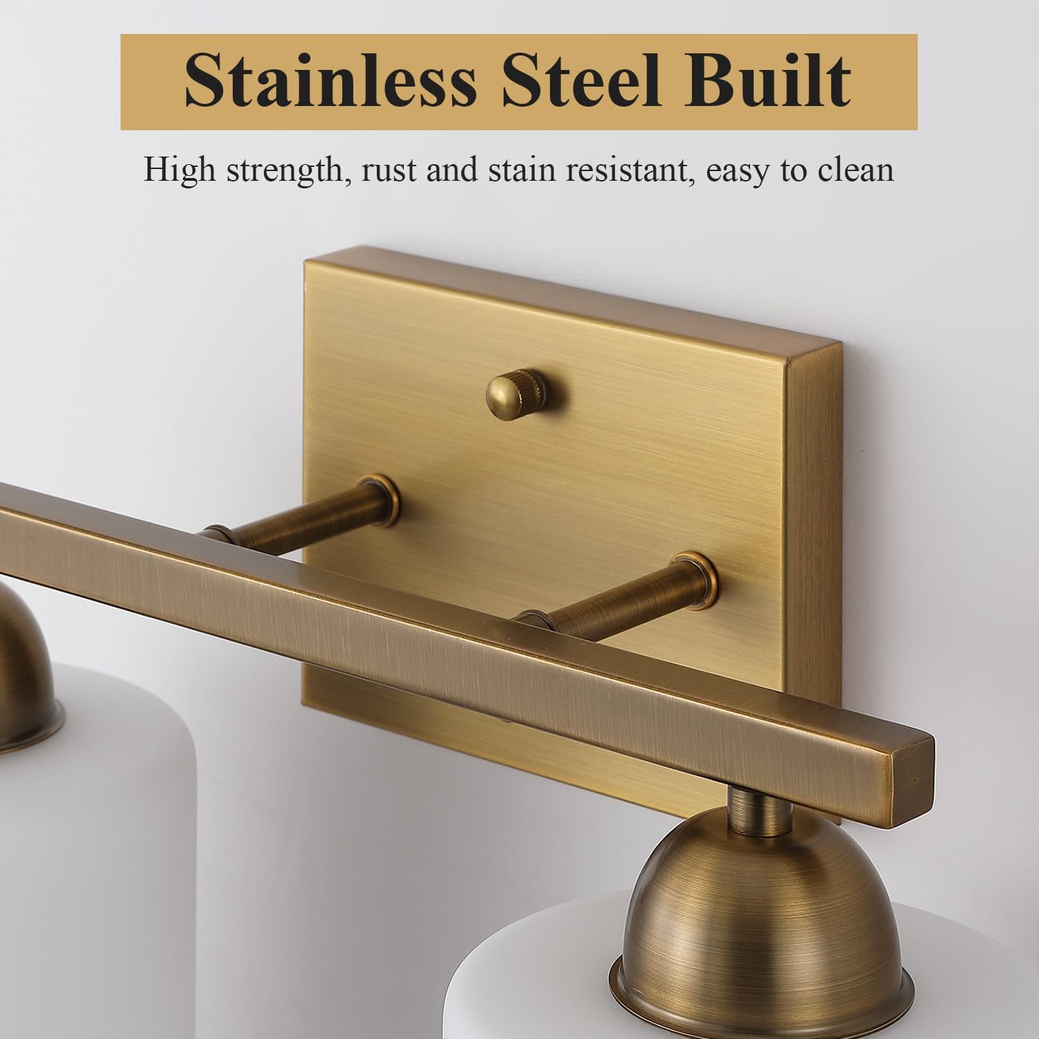 Stainless Steel Milk Glass Vanity Lights for Bathroom, 2 Light Brass Bathroom Light Fixtures Over Mirror, Ceramic E26 Sockets Wall Mounted
