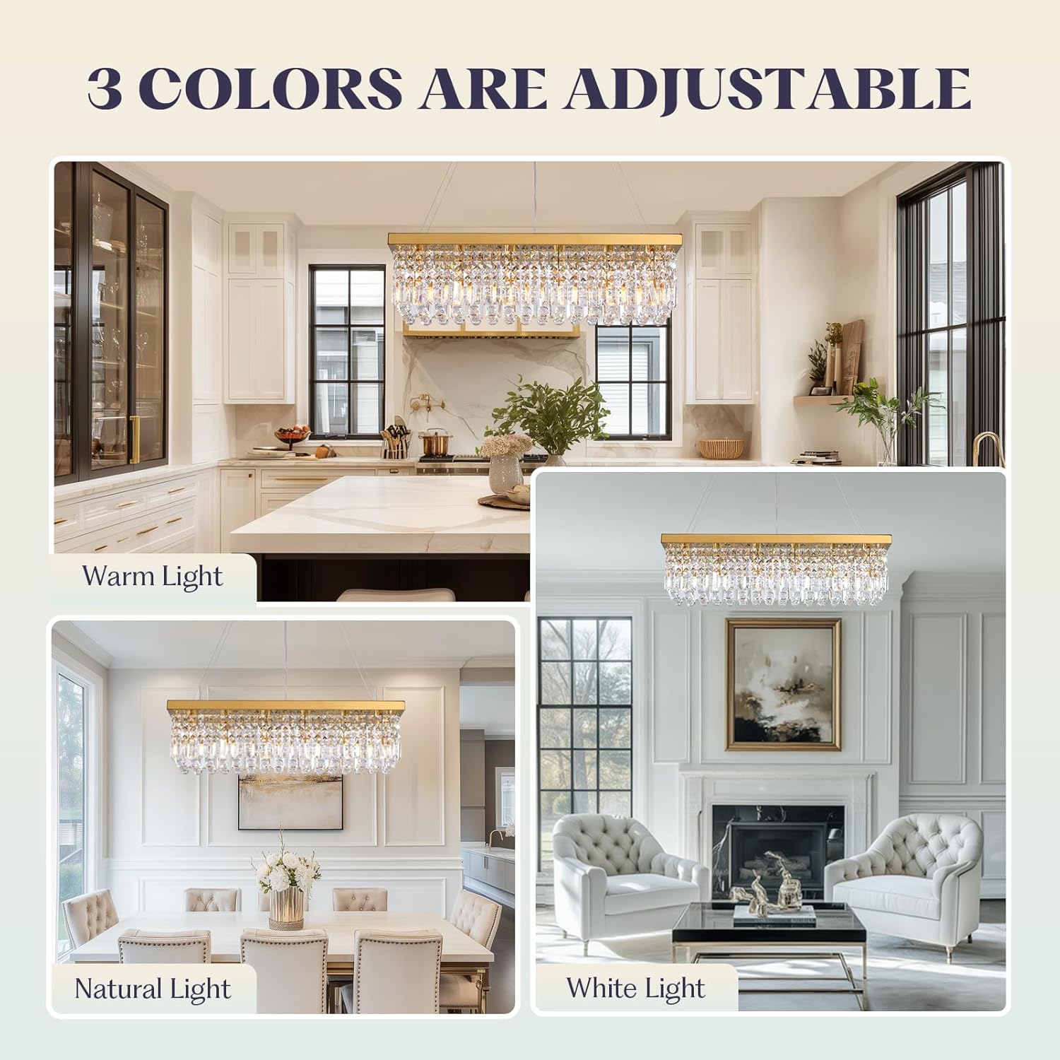 - đĄ ă3-Color Lighting with Dimmable OptionăCustomize your ambiance with 3-color light options (2700K/4500K/6000K)âwarm, neutral, or cool white. This modern crystal chandelier supports full dimming when used with dimmable E12 bulbs and a compatible dimmer switch (bulbs and switch not included). Create the right mood for every moment.