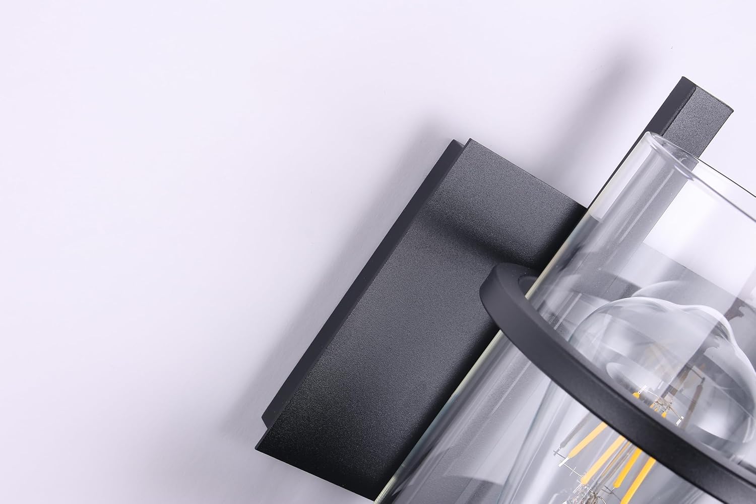 - Product Feature: Hardwired.Matte black bathroom light fixture with clear glass shade;Rustic Wall Sconce lighting is easy to install and can be mounted as either up light or downlight.