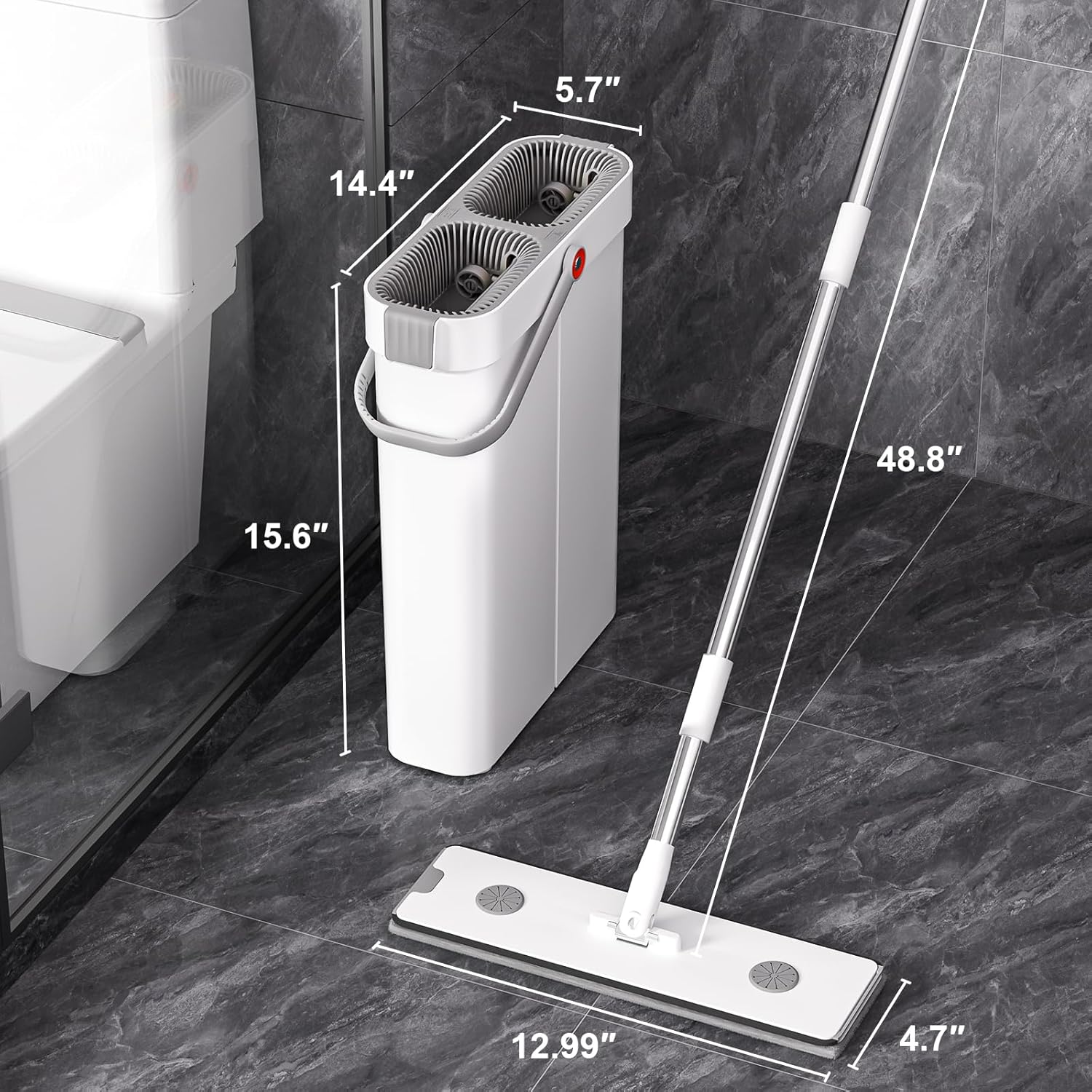 - ECO-FRIENDLY: Our Flat Floor Mop and Bucket Set is designed with the environment in mind. The microfiber mop pads are reusable and can be washed in the washing machine, reducing waste and saving you money. The mop bucket is made of polypropylene plastic, which is recyclable and eco-friendly.