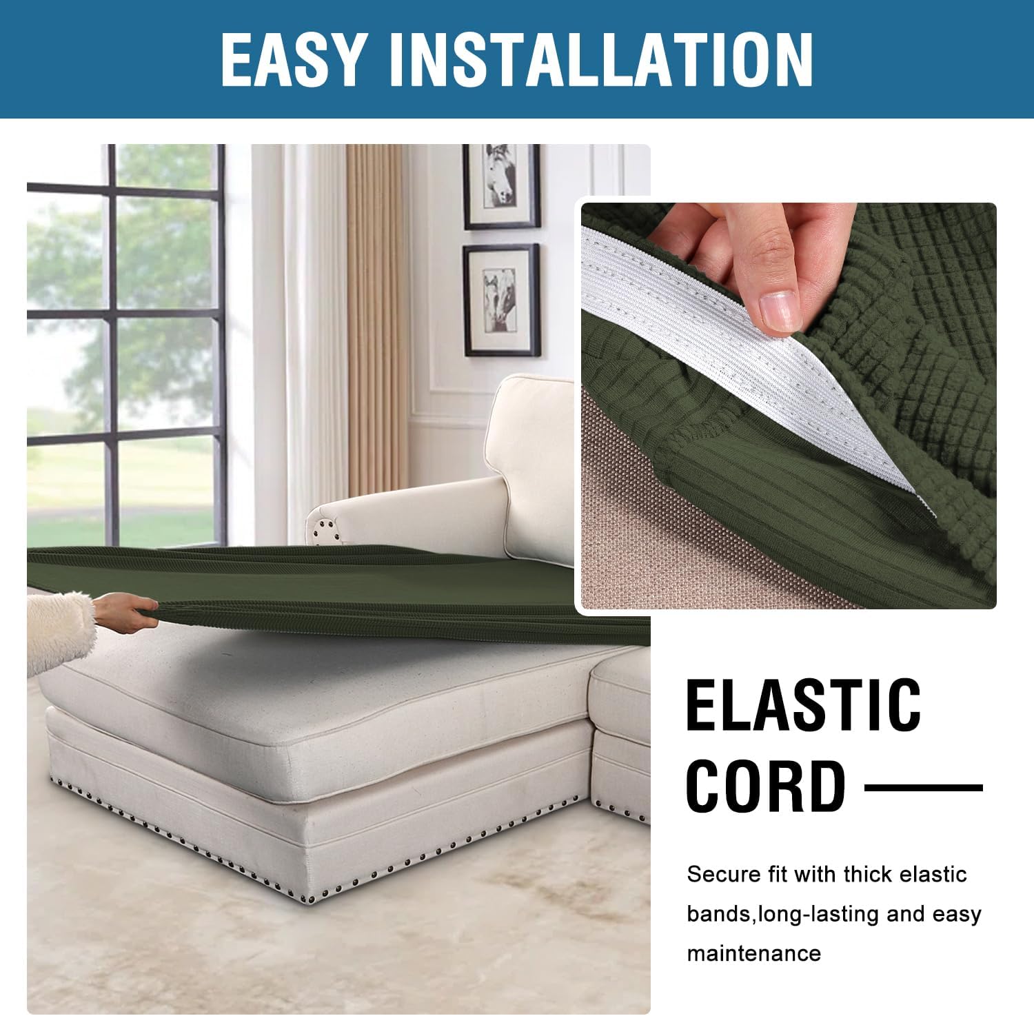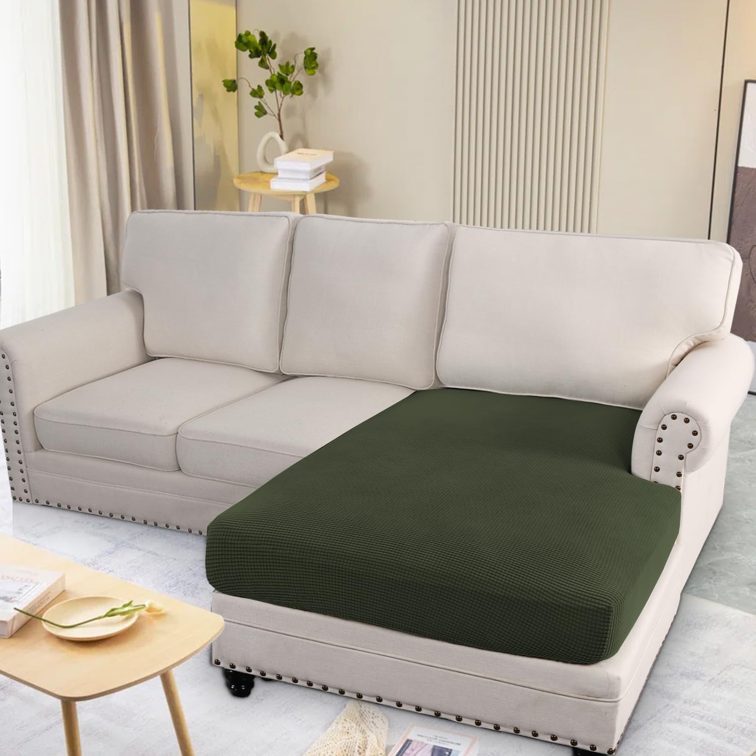 H.VERSAILTEX Super Stretch Individual Chaise Cover Sectional Couch Covers for L Shaped Sofa Both Left/Right Featuring Thick Jacquard Textured Twill Fabric (1 Piece Chaise Cover, Olive)