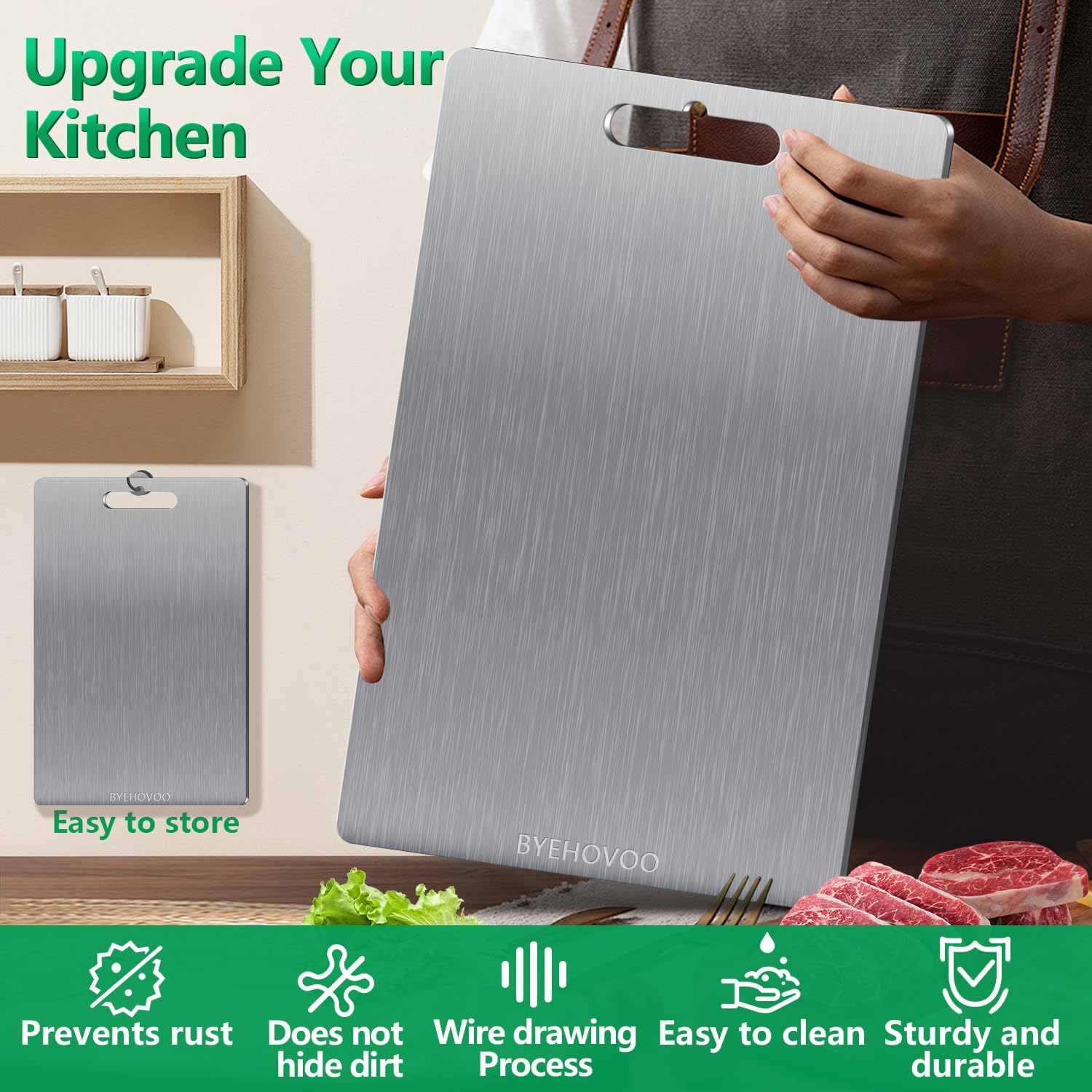 - ăMulti-Functional & Space-SavingăDouble sided titanium board as a stylish serving tray for cheese/charcuterie.Double-Sided Use for versatile use.Slim profile stores vertically to save kitchen space,easy storage.Perfect gift for mom,dad,men,women,girls and boys for Anniversary Day, Father's Day,Mother's Day,Christmas Day, Thanksgiving Day, Valentine's Day.If you have any questions or anything you feel unsatisfied, please flee free to contact us via amazon. BYEHOVOO team will happy to solve for you within 8 hours.
