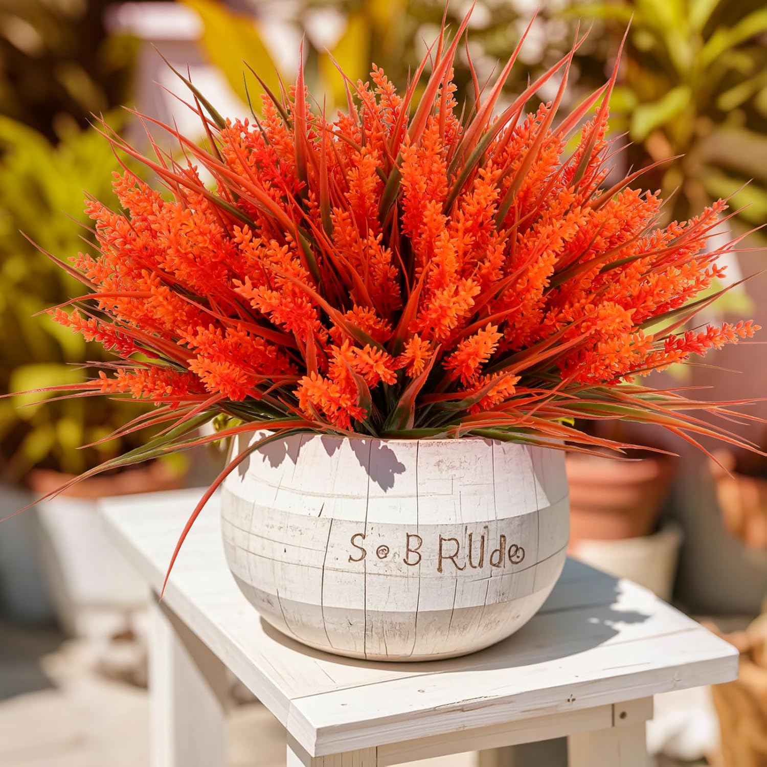 - Fall Door Decor Delight: Brighten your outdoor setting with these vibrant faux flowers in burnt orange shades; Their rich blossoms and lifelike appearance make them an ideal choice for cozy fall decoration and charming porch displays