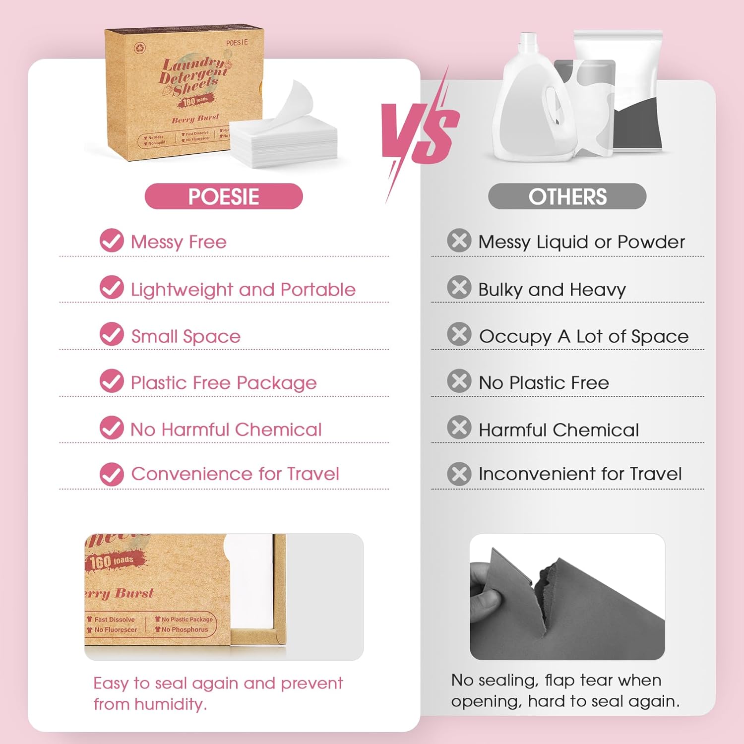 Poesie Laundry Detergent Sheet Berry Burst Scent 160 Sheets No Plastic Jugs No Messy Liquid Powder Camping Travel RV Trip Laundry Cleaning Sheet for Hand Wash Machine Wash