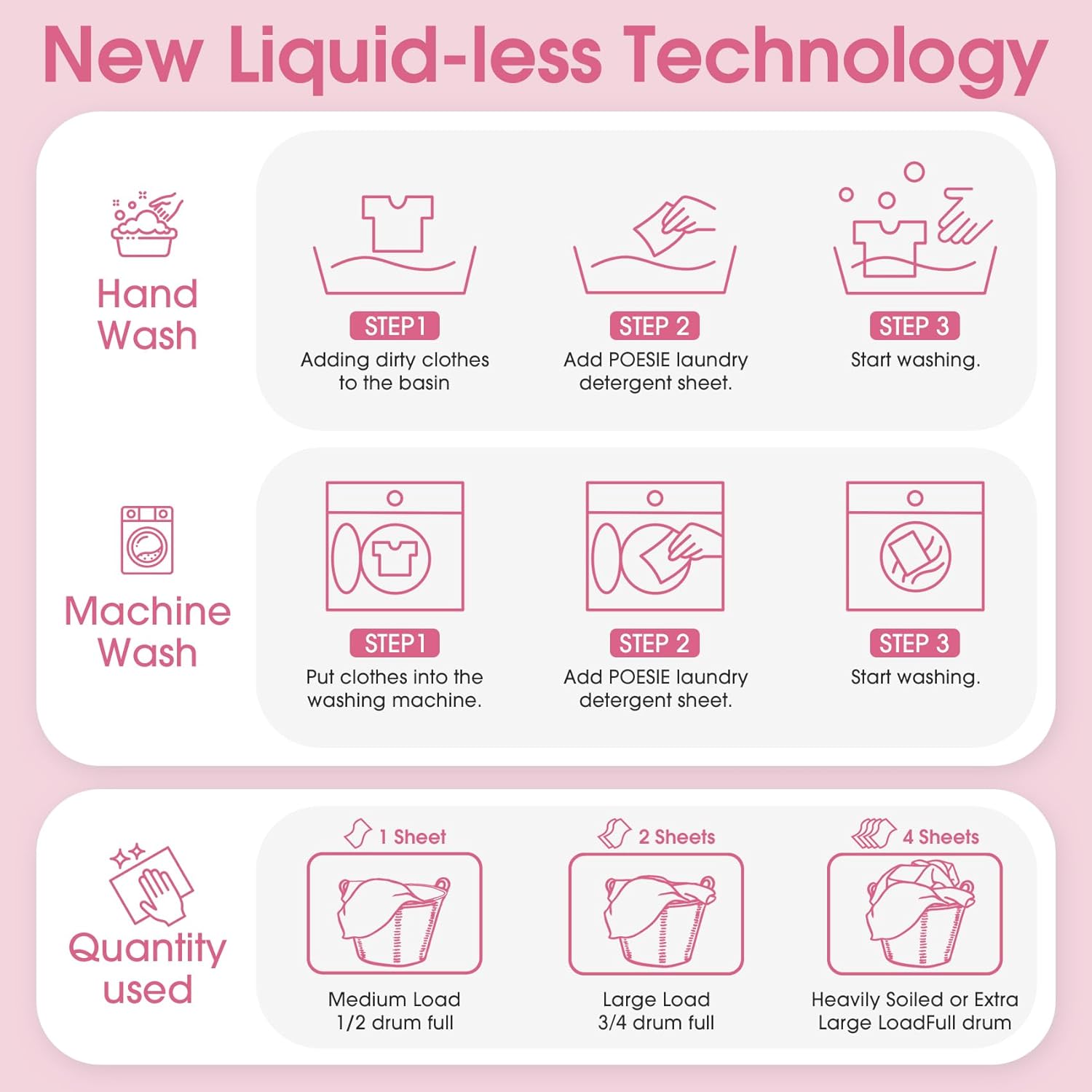 - Easy to Use - Liquidless detergent sheets, 1 sheet for small or medium loads where clothes are not very dirty, 2 sheets for large loads and 4 sheets for extra large loads, no waste. Not too little and not too much to save resources