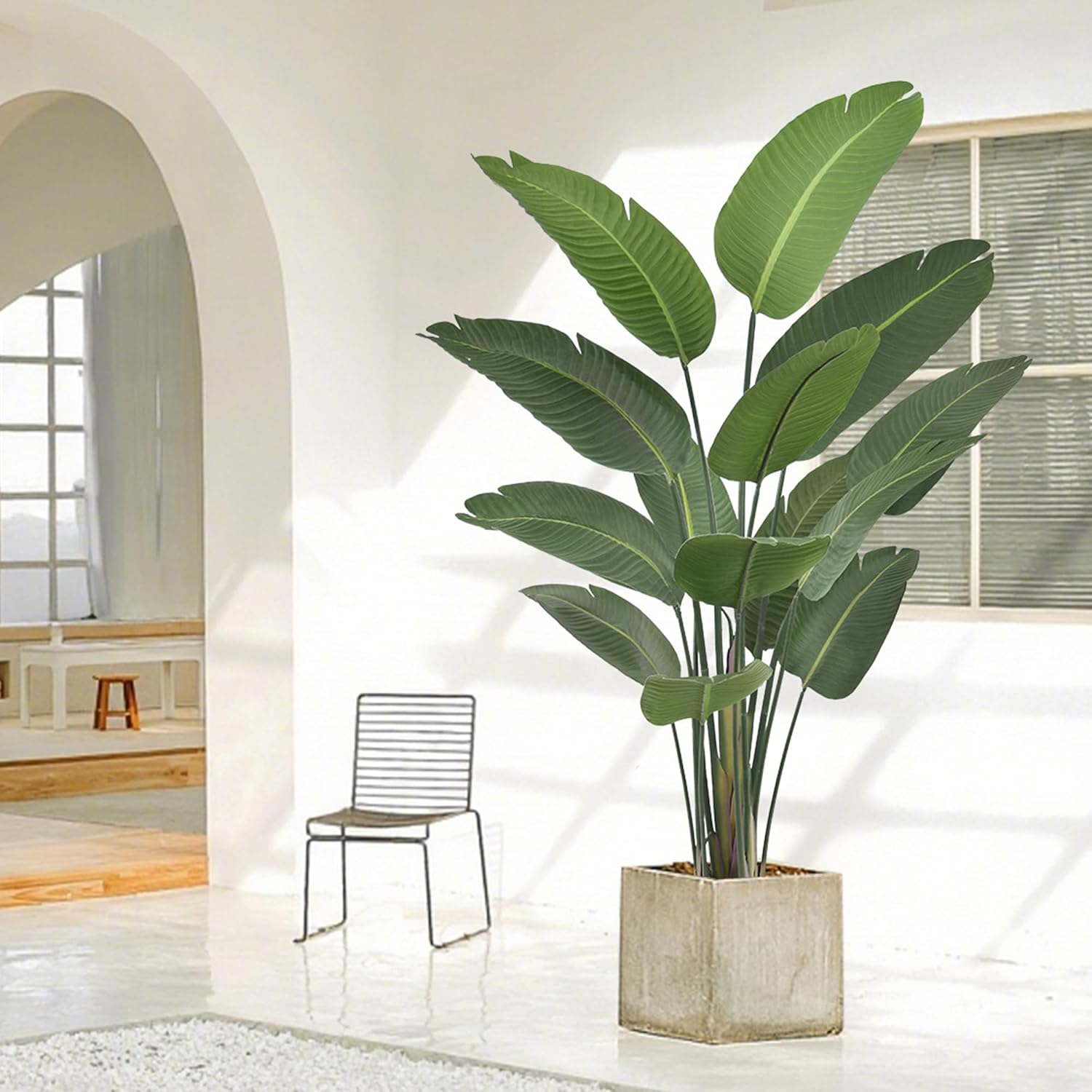 - Indoor Decor: Artificial Bird of Paradise Tree provides timeless home dรฉcor as a realistic fake plant, odorless and indelible, this large artificial plant is perfect for a variety of environments including living rooms, bedrooms, kitchens, entrances, patios, cafes, bathrooms, offices, malls, and doorways and corners