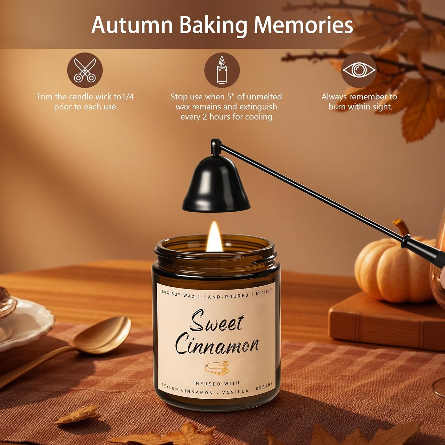 - 🕯️Scented Candles for Autumn: Embrace the beauty of the season with our Fall Candle, featuring a delightful Sweet Cinnamon Scented Candle for Autumn. Infused with warm cinnamon spice and hints of apple, this candle is perfect for welcoming autumn into your home.