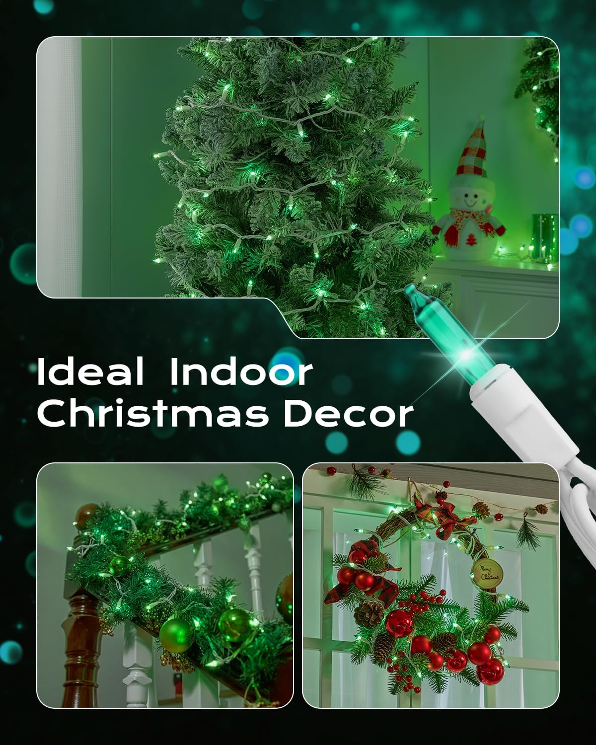 - 【Festive Mini Christmas Lights Set】This set includes 100 green incandescent mini-lights on 26.5 ft white wire, with bulbs spaced 3-inche apart and 18-inch lead wire. Perfect for holiday decorating, with the ability to connect up to 5 light strings end-to-end;